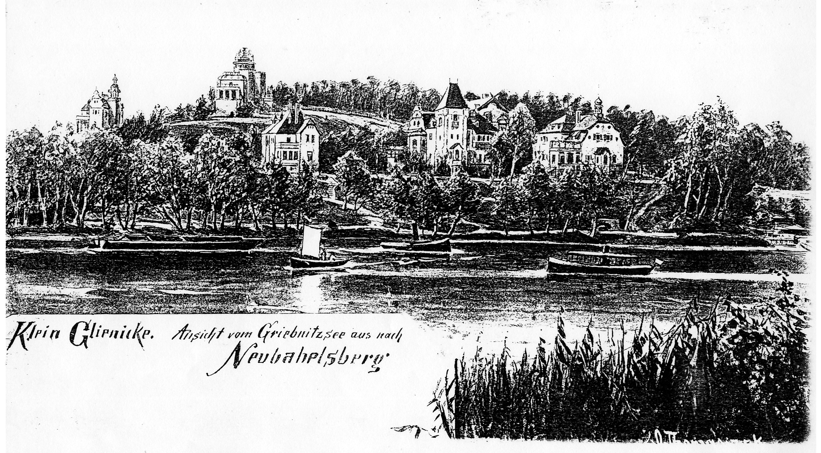 Links neben dem Forsthaus Kleinglienicke (an dem sich die heutige Waldmüllerstraße mit der Wannseestraße trifft, führt eine Landspitze zum Ufer des Griebnitzsees.