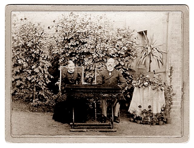 Meine Großeltern: Karl Johann Friedrich Sommer (1831–1909), einer der Schuhmacher-Meister unseres Familienverbandes, hier 74 Jahre alt und seine Ehefrau Marie Elisabeth, geborene Weltzer (1838–1906). Sei war Mutter und Hausfrau .