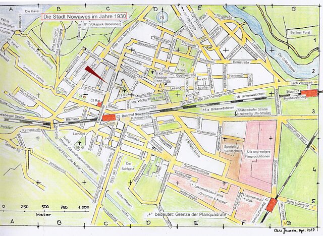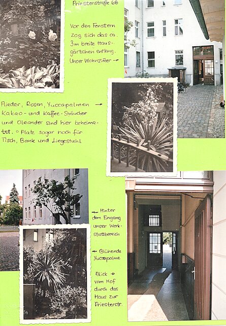 Damit ihr seht, wo dieses Haus steht in dem wir wohnen, gibt es diese Orientierungs-Karte. Die Spitze des dunkelrotbraunen Pfeils zeigt auf den Standort „unseres“ Hauses Priesterstraße 68. (Nach 1945 wird das Grundstück die Karl-Liebknecht-Straße 121 sein, ohne dass die Straße mehr Häuser hat.)
