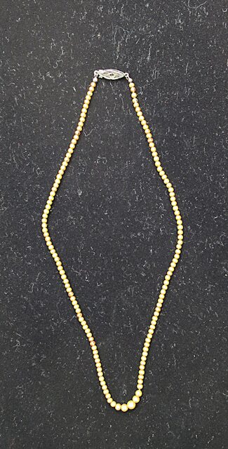 Von den Eltern bekomme ich als Zeichen meiner „voranschreitenden Halbwüchsigkeit“ eine kleine Perlenkette geschenkt. Das scheint doch naheliegend, nannten sie mich mit einem zweiten Vornamen doch schließlich Margarete. So fehlen nur noch Anlass und die entsprechende Kleidung, um dieses Kettchen spazieren zu tragen. Also bleibt es/sie erst mal ...