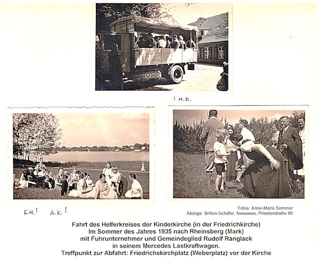 - Hedwig Emma Knoll, jun., geborene Benkner, geboren in Nowawes am 13. Mai 1907. Ehefrau des Friseurs Walter Knoll, mit Töchterchen Else Hedwig Christel, geboren am 17. November 1927. Im Kinderwagen Hermann Walter Fritz, geboren am 19. März 1930. Anne-Marie Sommer, später verehelichte Janecke, ist eine Tauf-Patin des kleinen Fritzen.