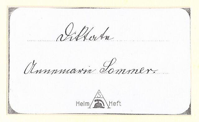 An dieser Stelle endet diese Bilderserie über die Kinder- und Jugendjahre der Anne-Marie Sommer. Vorhanden ist eine ähnlich gestaltete Bilderserie zu den Kinder- und Jugendjahren des