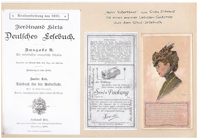 Die Lesebücher sind mir am liebsten. Schon bald nach dem Schuljahresbeginn sind sie zum ersten mal „ausgelesen“. Besonders mag ich die Gedichte von Frau Frida Schanz.