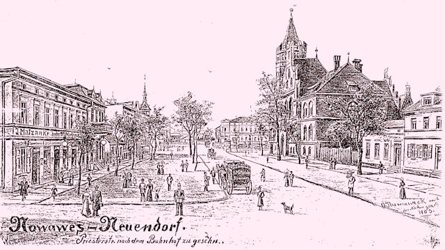 Am Montag, den 01. August 1927 heiraten mein Cousin Walter Knoll (* 02. August 1900, 27 Jahre alt) und Hedwig Benkner (* 13. Mai 1907, 20 Jahre jung). Die Bürgerliche Eheschließung im Standesamt des Nowaweser Rathauses in der Priesterstraße und die kirchliche Trauung in der Friedrichskirche bei Oberpfarrer Hermann Dessin, einen Tag darauf, an Walters Geburtstag. Von nunan leben sie gemeinsam in der Mittelstraße 19. Im Parterre hat Walter seinen Friseursalon.