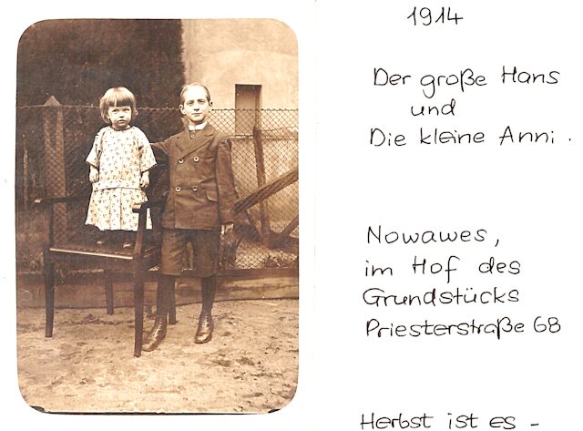 1914: Kinder, wie die Zeit vergeht. Das erste Foto, auf dem ich zu sehen bin. Und ein großes Mädchen bin ich inzwischen auch schon – so groß wie mein Bruder.