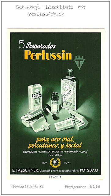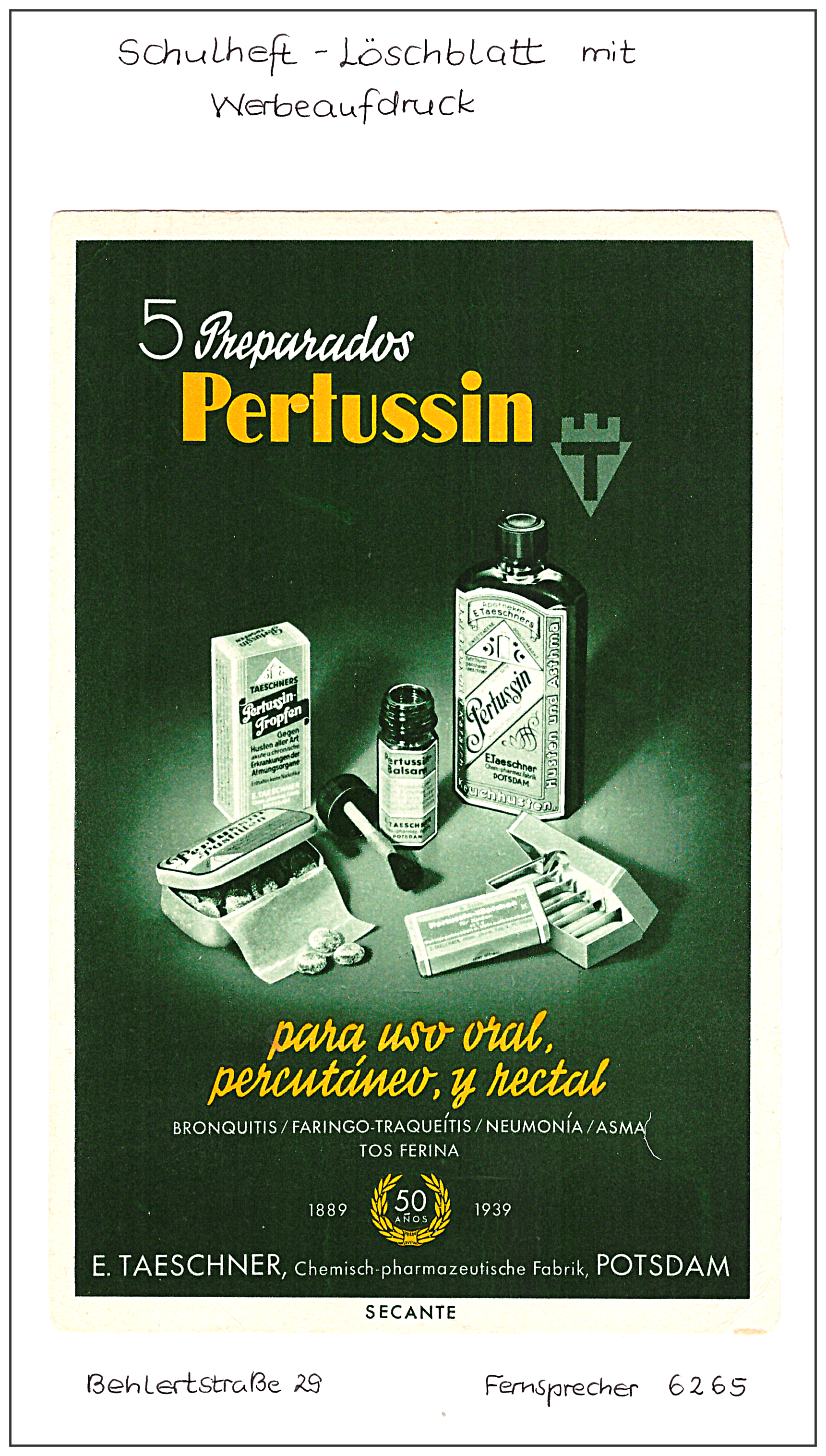Das Tintenlöschblatt für ein sauberes Heft – auf der Rückseite oft mit Werbung für gute Dinge des Lebens.