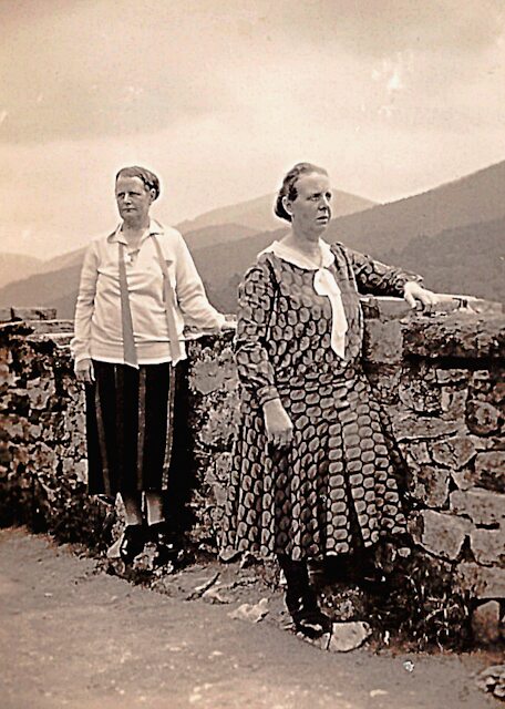 Beide stehen auf der Burgruine in Badenweiler. Hinten: Tante Johanna Seehafer, vorn meine Mutter Margarete Sommer – beide jedoch geborene Runge-Töchter.