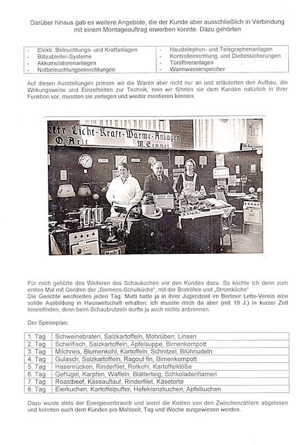 Zur Kundenbetreuung gehört für mich auch, dass ich hier zur Werbung täglich stundenlang koche, brate, brutzele und backe, damit die Besucher kosten können, ob das Essen vom Elektroherd anders schmeckt, als wenn es auf dem heimischen Holz-/Kohle-Herd zubereitet wurde. Zumindest bei mir darf nichts anbrennen!