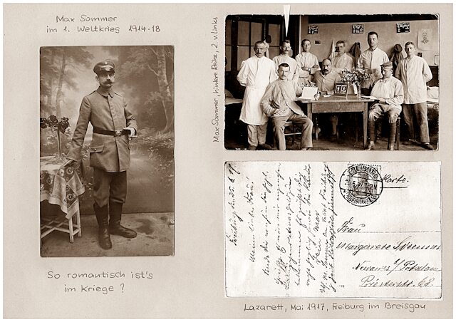Vater ist im Krieg und hilft da dem Kaiser und König aber auch dem Volke und dem Vaterland. Fast könnte man ihn, der Barttracht nach zu urteilen, mit einem Kaiser verwechseln. Hauptsächlich verlegt Vater Max dort Elektroleitungen für alle möglichen Zwecke, was der Wilhelm II. aber nicht tut. Nur kurz kann deshalb der Vater bei uns zu Besuch weilen.