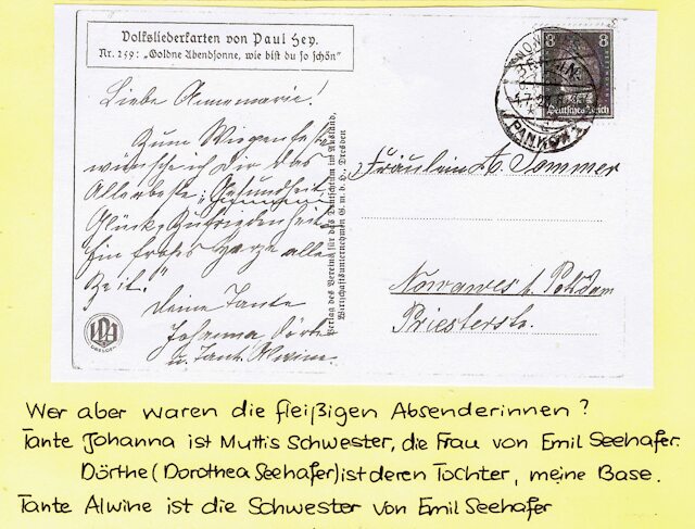 Der zurückhaltende Gruß des stillen Verehrers Kurt Do., (der jedoch nach einer Reihe von Jahrzehnten nachgedunkelt ist).