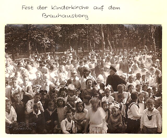 Die Kinder-Gemeinde der Friedrichskirche begeht diesmal ihr beliebtes Sommerfest auf dem Potsdamer Brauhausberg. Das Bild konnte leider nur einen Teil der großen Kinderschar erfassen.