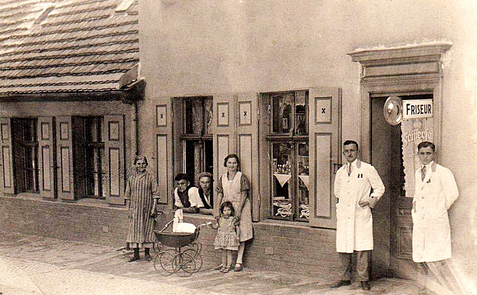 - Ein angestellter Friseur-Geselle, dessen Namen uns Betrachtern nicht einfallen kann, weil wir erst wesentlich später geboren wurden und diesen Freundlichen deshalb nicht mehr kennenlernten.