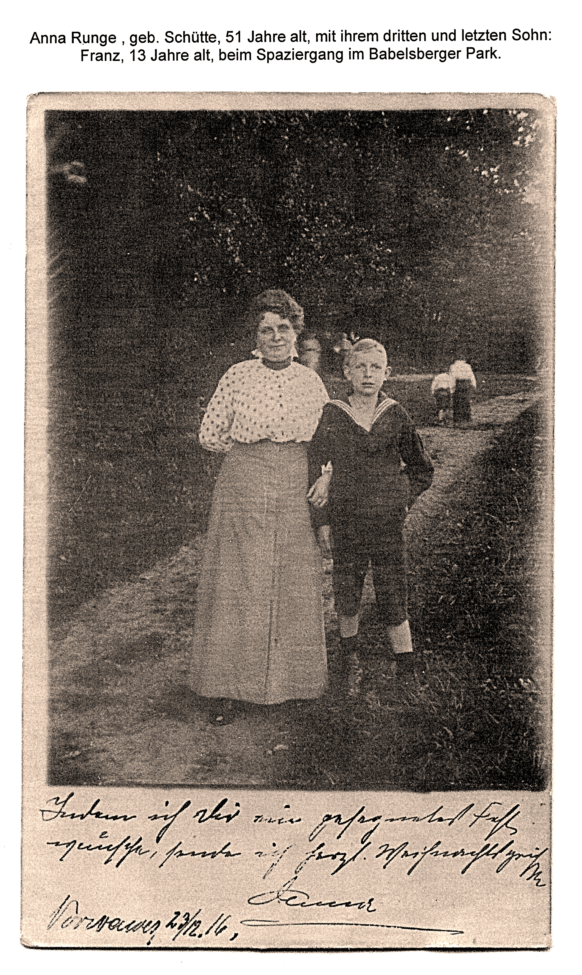 Im Textteil hatte ich von dem merkwürdigen Besuch eines jungen Mannes, jetzt 1928, bei meinem Vater erzählt. Das also ist Franz Runge im Jahre 1916. So sah er aus, als ich drei Jahre alt war. Er ist jener, der den Motorradunfall hatte. Inzwischen aber ist er 25 Jahre alt, doch immer noch genauso alt, wie mein Vetter Hellmut Runge, – im Jahre 1903 geboren, beide ein Jahrzehnt älter als ich.