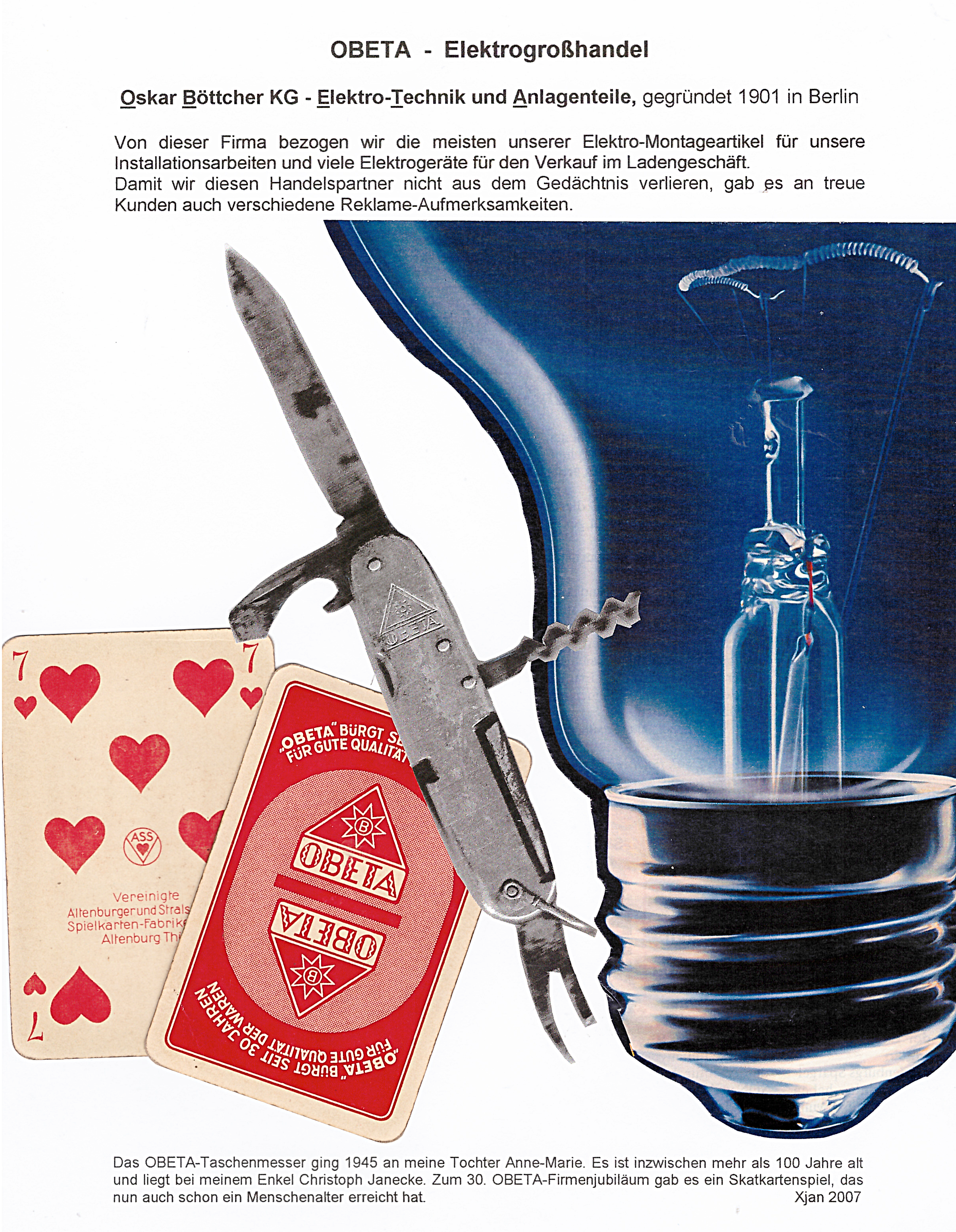Ein weiterer Taufpate ist Emil Seehafer, der Ehemann von Muttis Schwester Johanna. Tante Johanna war eine Taufpatin meines Bruders. Sie leben in Berlin; deshalb gab es von ihnen ein einzelnes Geschenk: Eine schöne weiße Tischdecke mit kreuzweise angeordneten zartgelben Streifen, die nach dankbarer Bewunderung nun vorerst einen Platz in meiner dunklen „Aussteuerkiste“ einnimmt.