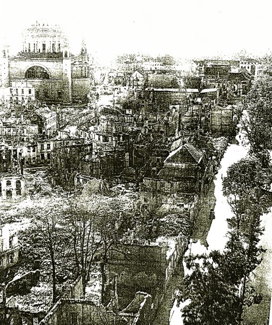 Nach dem 14. April 1945. Das Potsdamer Stadtzentrum am Ende dieses sinnlosen, verbrecherischen Krieges. (Luftbild der Alliierten zum Erfolg des Bombardements.)