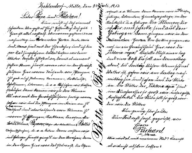 Oh, Post von meinem 12-jährigen Brüderchen Richard. Er schreibt von einem Besuch im Botanischen Garten.