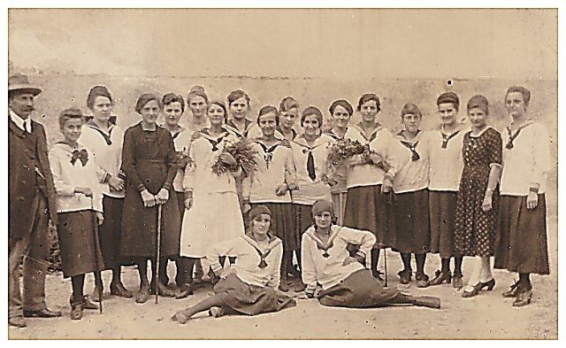 1916: Jungfrauen-Gruppe des Turnvereins „Nowawes 1862“. Ich bin die 3. von rechts, gehöre mit meinen Leistungen aber zu den Ersten. Bitte!