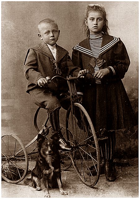 Neuendorf bei Potsdam im Jahre 1905: Unser Hund, der „Drewitzer“ - Richard - und ich, die Käthe. Man sollte es aber bitte eher von rechts nach links in geordneter Reihenfolge lesen.