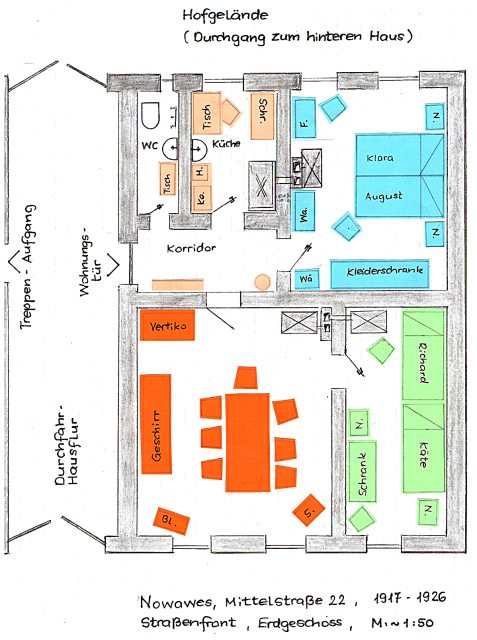 1917: Wir wohnen seit kurzer Zeit in der Nowaweser Mittelstraße 22 – im Parterre, rechts vom Hausflur.