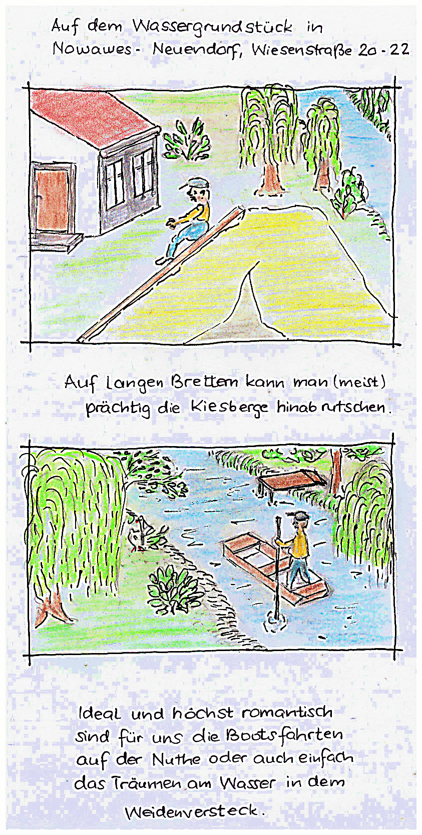 Auf dem Wasser-Grundstück Wiesenstraße 20-22. Ich schaue den Unternehmungen meines kleinen Bruders zu – manchmal mache ich dabei auch mit – immer noch viel besser, als mit Puppen oder so.