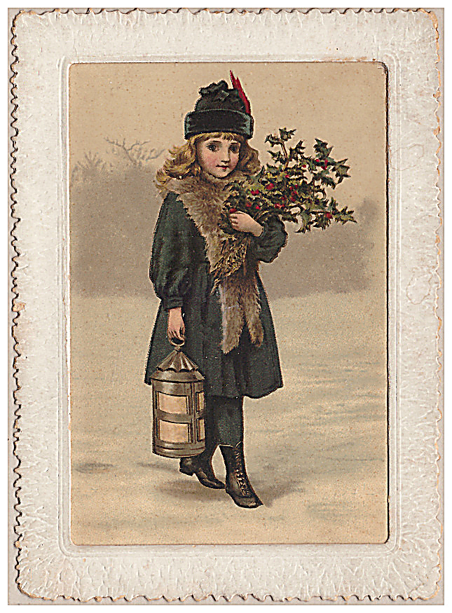 Winterszeit! Diese Karte kann auch hinterleuchtet aufgestellt werden. Die Laterne lässt dann den schneebedeckten Boden leuchten und bringt einen sanften Lichtschein zu Händen und Gesicht des Kindes.