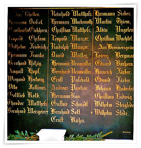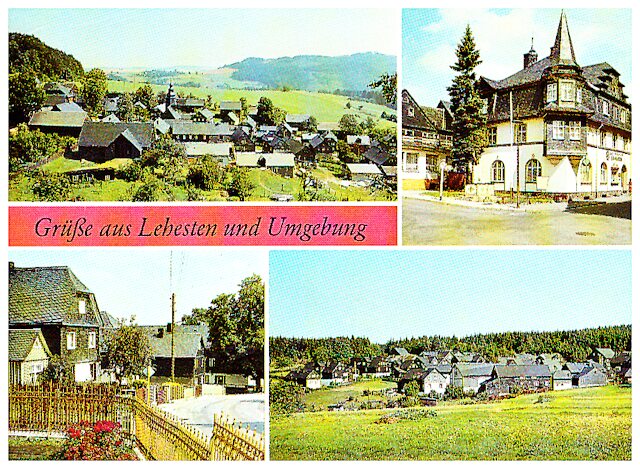 Die Kirchgasse in der Berg- und Schieferstadt Lehesten.Ein Blick zur Kirche. Alle Fotos vom 5. Februar 2009.Der Zinkenweg.Der Innenraum der Kirche noch weihnachtlich-festlich geschmückt.Der angenehm gestaltete Raum – von der Orgel gekrönt.Der Taufstein oder die Taufschale in der Kirche.Eine schwere Handarbeit ist die Schiefergewinnung selbst im Tagebau-Betrieb und beim Einsatz moderner Technik. Foto ohne Angaben vom September 1948. Bildnachweis: Bundesarchiv, Bild 183-R99806 / CC-BY-SA 3.0Schiefer – Natur-Material für vielfältige Einsatzgebiete wie Dachschiefer, Schreibschiefertafeln, Griffelschiefer, Schiefermehl als Ausgangsrohmaterial für mancherlei weitere Anwendungen.Die gewaltige Schiefertafel (302 x 253 – ein Stück!) in der Kirche zu Lehesten wurde zu der dauerhaft traurigen Aufgabe bestimmt, die Namen der Söhne der Kleinstadt zu zeigen, die im Krieg 1871 /71 gegen Frankreich ihr Leben lassen mussten.... schon wieder: Eine Gedenktafel für die zu Tode verletzten Soldaten des Krieges 1914–18. Leider waren es mehr Soldaten, hier wird nur ein Ausschnitt gezeigt ... und schon wenige Jahre später wird es weitergehen mit diesem Wahnsinn.Lehesten und Umgebung – eine Ansichtskarte mit der rückseitigen Erläuterug: Kreis Lobenstein, - Schmiedebach, Übersicht, - Lehesten, Rathaus, - Röttersdorf, Ortsmotiv, - Brennersgrün, Übersicht Bildnachweis: Bild und Heimat, Reichenbach (Vogtland), A1/III/26/13 * 01 10 0561/04 K * DDR 0,20 M, Farbfotos: Fichtelmann, Schleiz.Lehesten (im Kreis Lobenstein), das Stadtgebiet – eine Ansichtskarte mit rückseitiger Erläuterung: 1 Übersicht, 2 Waldbad, 3 Alter Schiefertagebau, 4 Bahnhofstraße, 5 Magnus-Poser-Oberschule. Bildnachweis: Bild und Heimat, Reichenbach (Vogtland), A 1/B 55/87 * IV 14 483 01 010 04 159 * DDR 0,25 M, Echt Foto. (Keine Namensangabe des Fotografen).Lehesten – die Stadt stellt sich als Ganzes vor und wir verabschieden uns von ihr