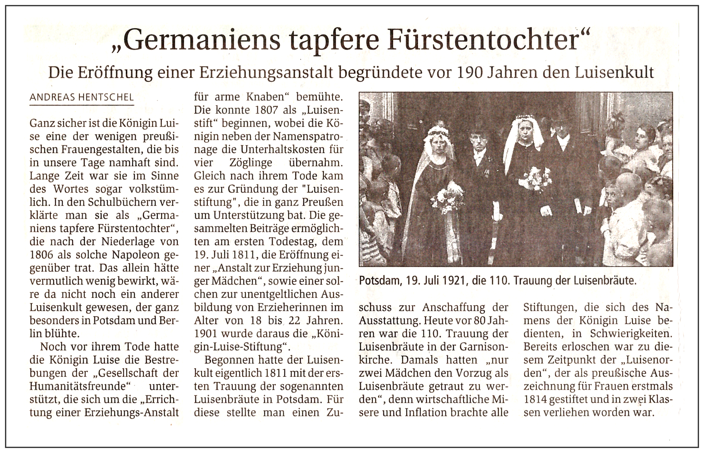 Quelle: nicht genau bekannt, Ausriss aus einer Potsdamer Tageszeitung nach 1989.