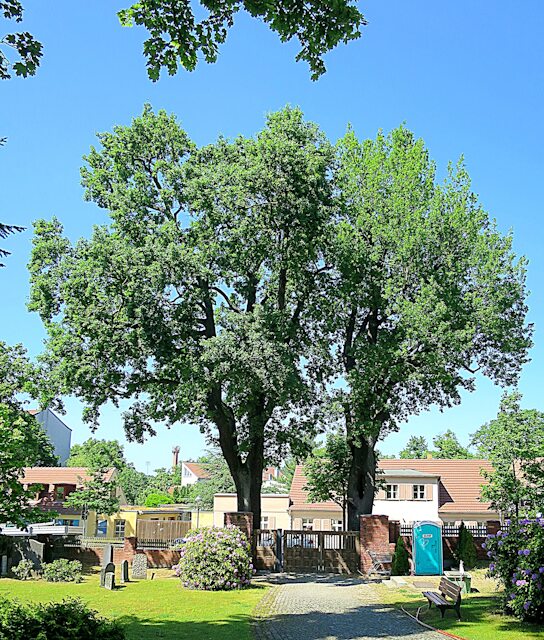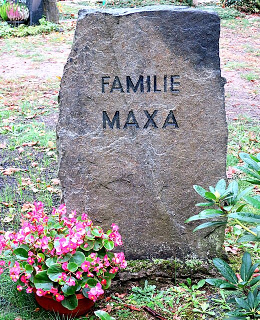 Der Ein- und Ausgang wird von gewaltigen Eichen flankiert. Auf diesem Grundstück fanden auch die Familien Maxa ihre Ruhe. Allerdings wurde 1898 die kommunale Friedhofsanlage an der Goethestraße in Betrieb genommen, auf dem dann auch Maxa-Personen ruhen, deren Lebenskreis sich nach dieser Zeit schloss.