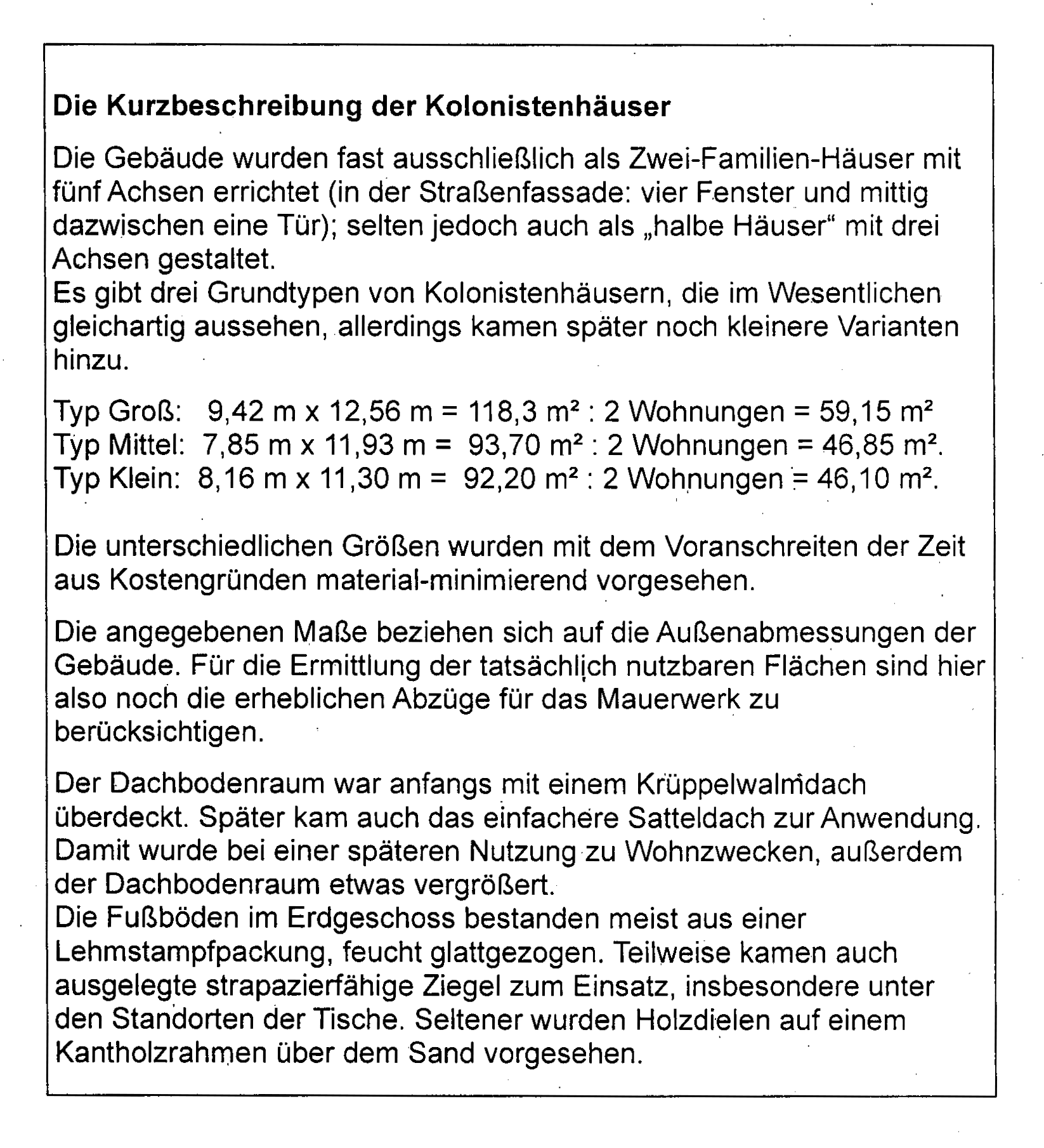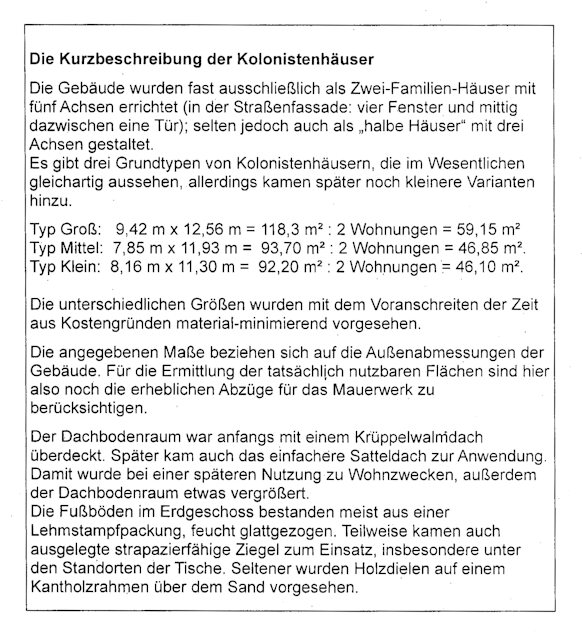 Die ursprüngliche Gestalt der ersten Kolonistenhäuser als Typenbauten.