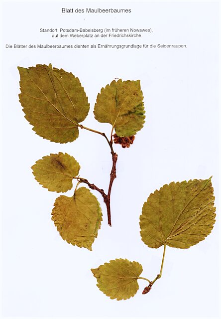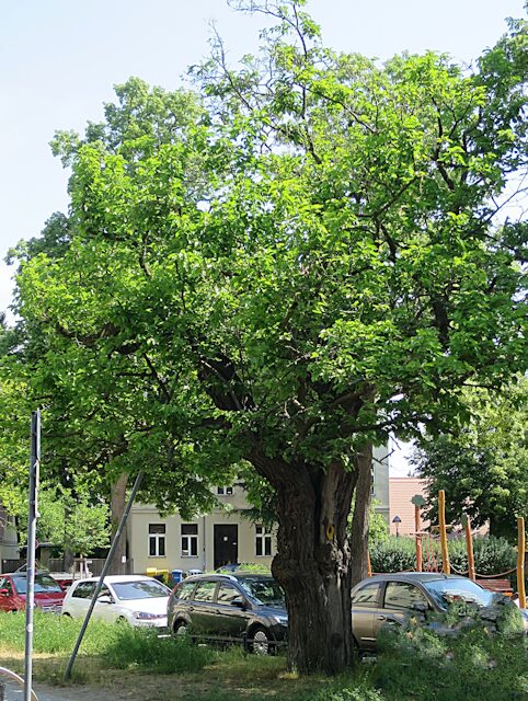 Einer der letzten von tausenden Maulbeerbäumen aus der Zeit um 1770, dicht bei der Kirche stehend (Foto aus dem Jahr 2023)