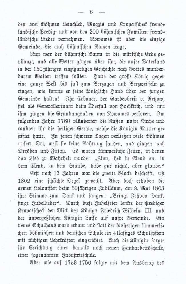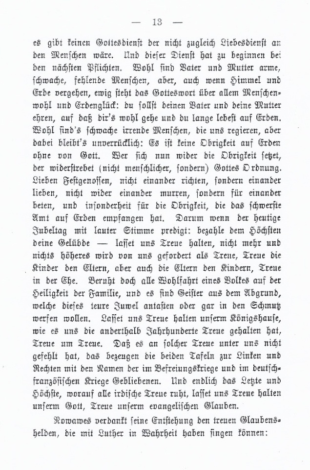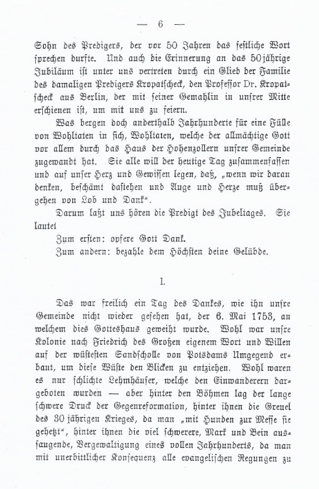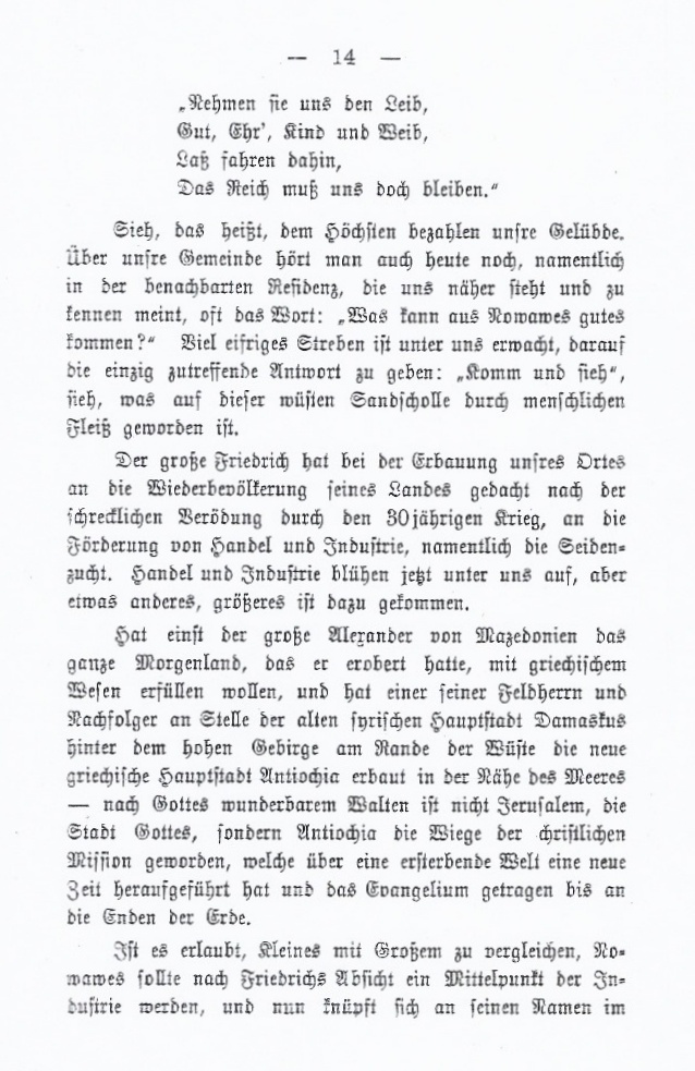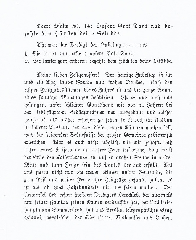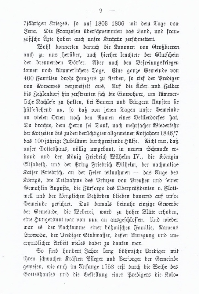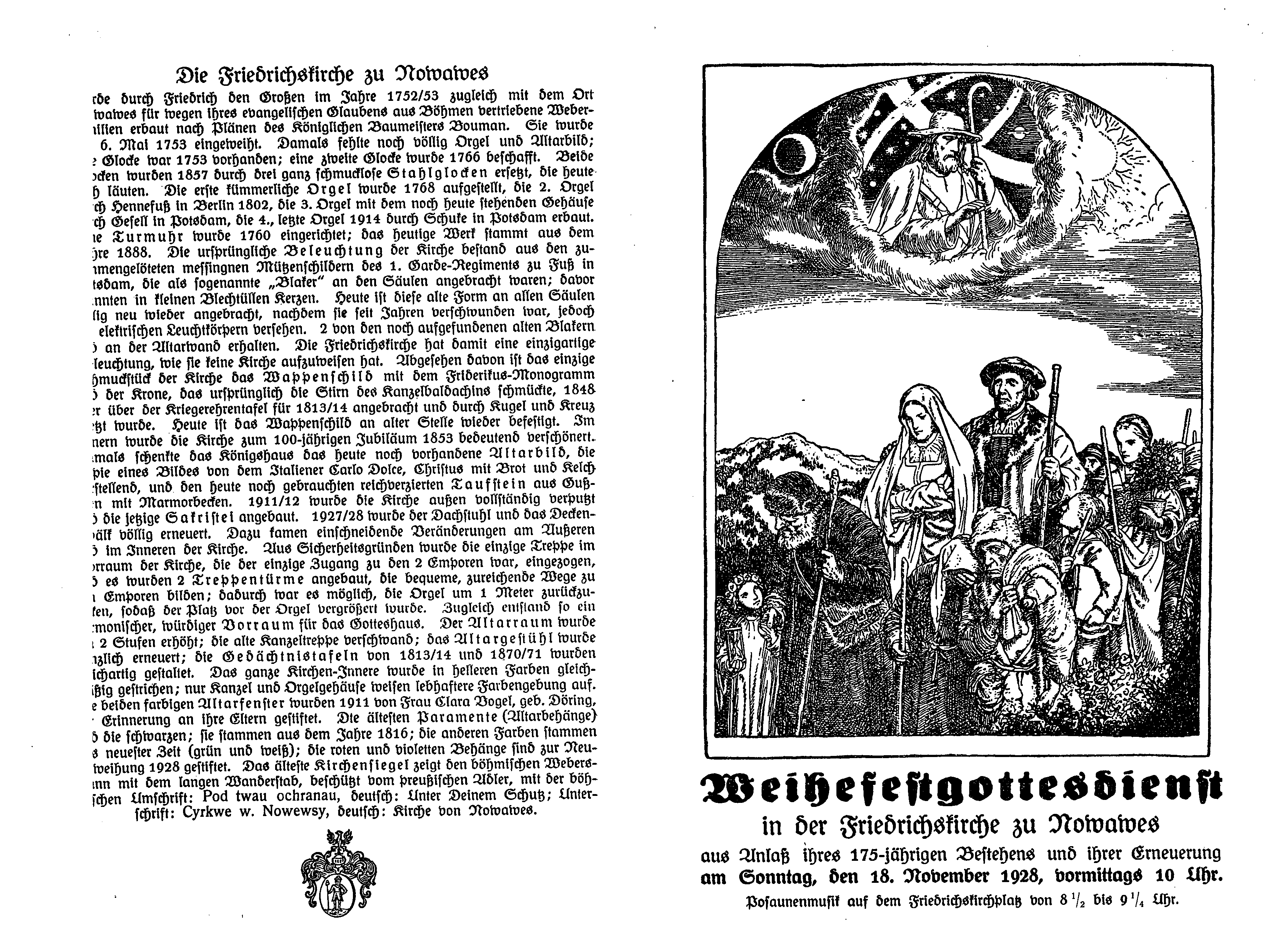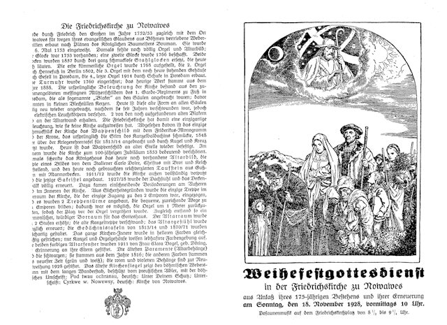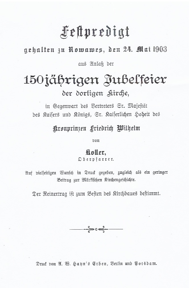 Im Jahre 1903 wird Nowawes 150 Jahre alt und mit dem Ort aus seine Kirche. Am 24. Mai 1903 hält Oberpfarrer Koller dort seine Festpredigt. Diese ist am Einde dieses Dokuments als Anhang beigefügt.