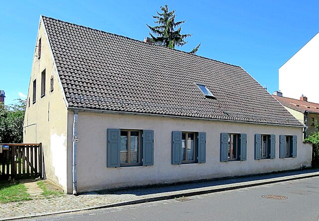 Franziska Olga Maxa lebte um 1884 in dem halben Weberhaus in der Kirchstraße 6 => Bendastraße. Der flache Anbau kam erst später als Erweiterung hinzu.