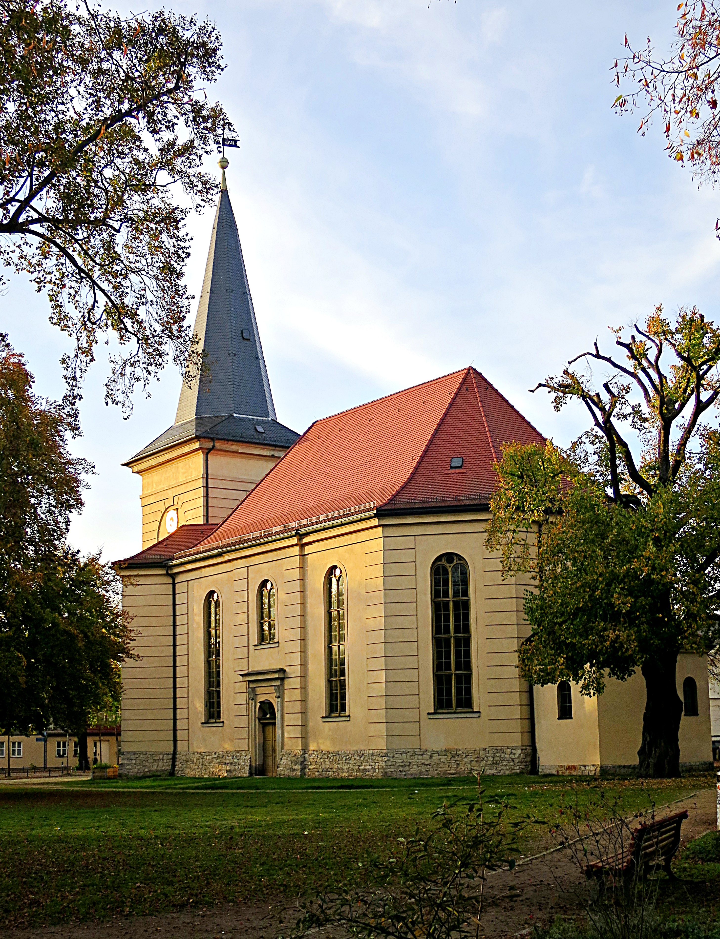 Die Friedrichskirche von Südosten gesehen. Das Gotteshaus bietet 900 Gläubigen Platz.