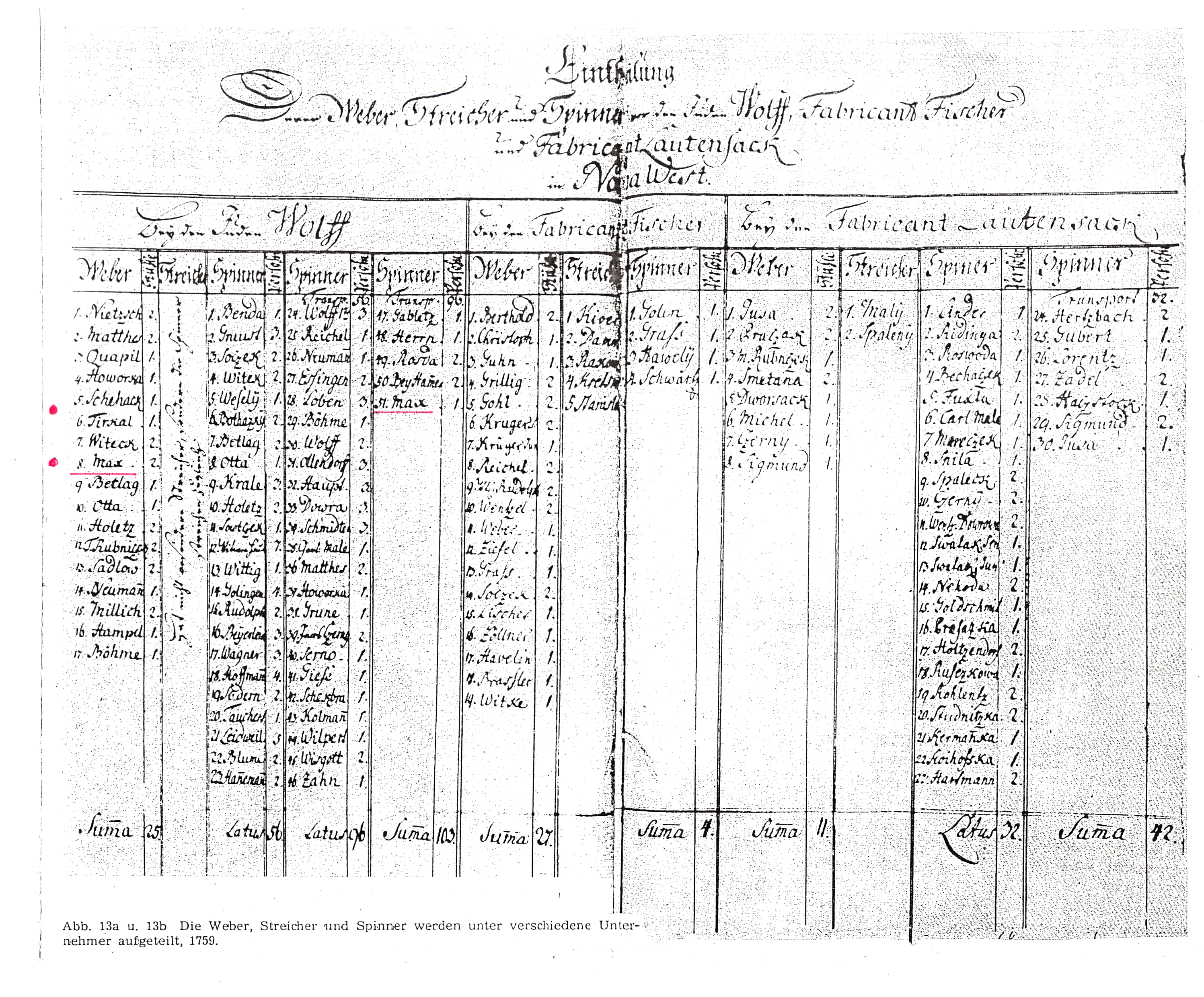 Erwähnt werden hier die Familienhäupter: Weber Max und Spinner Max (noch ohne -a und auch leider ohne deren Vornamen).