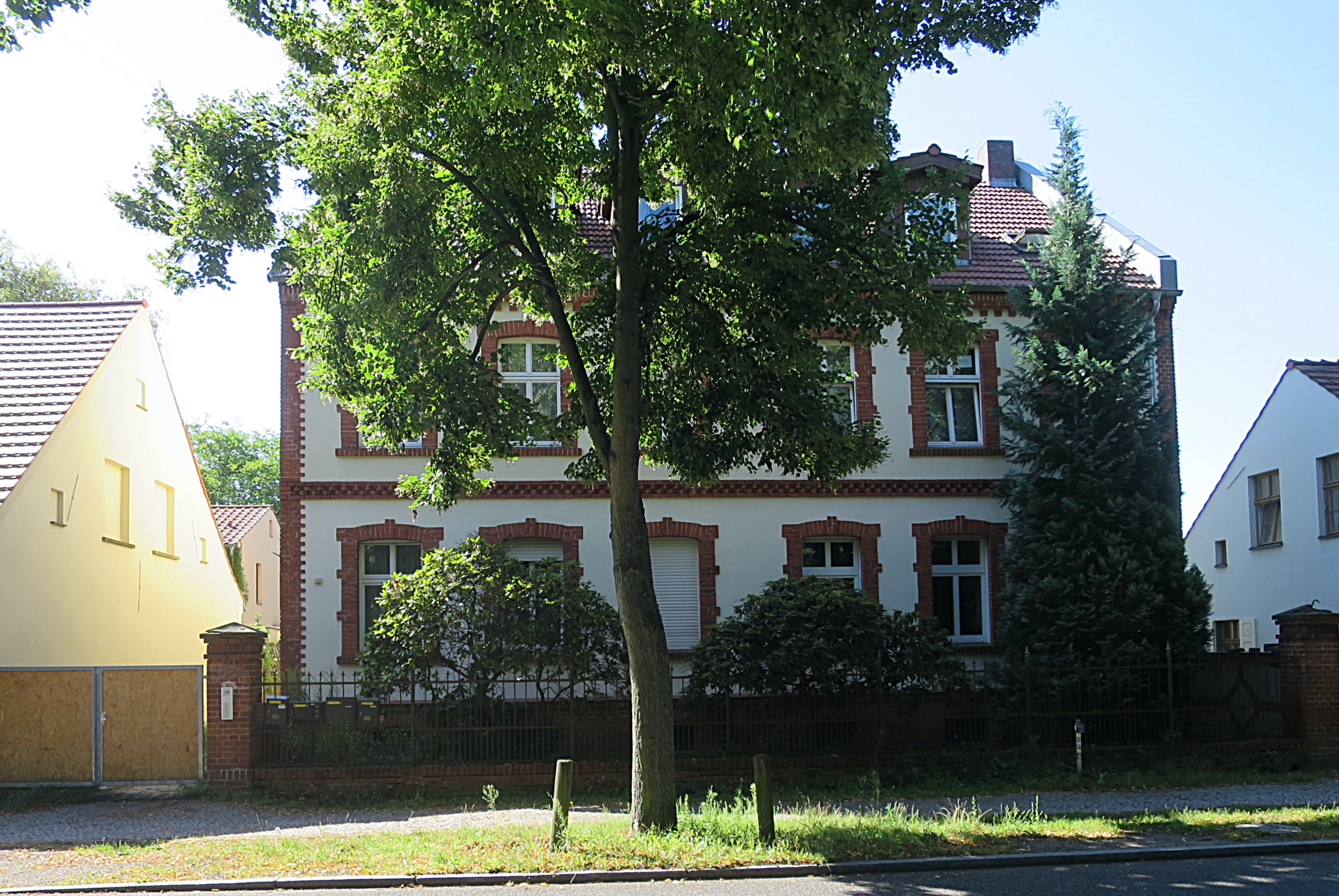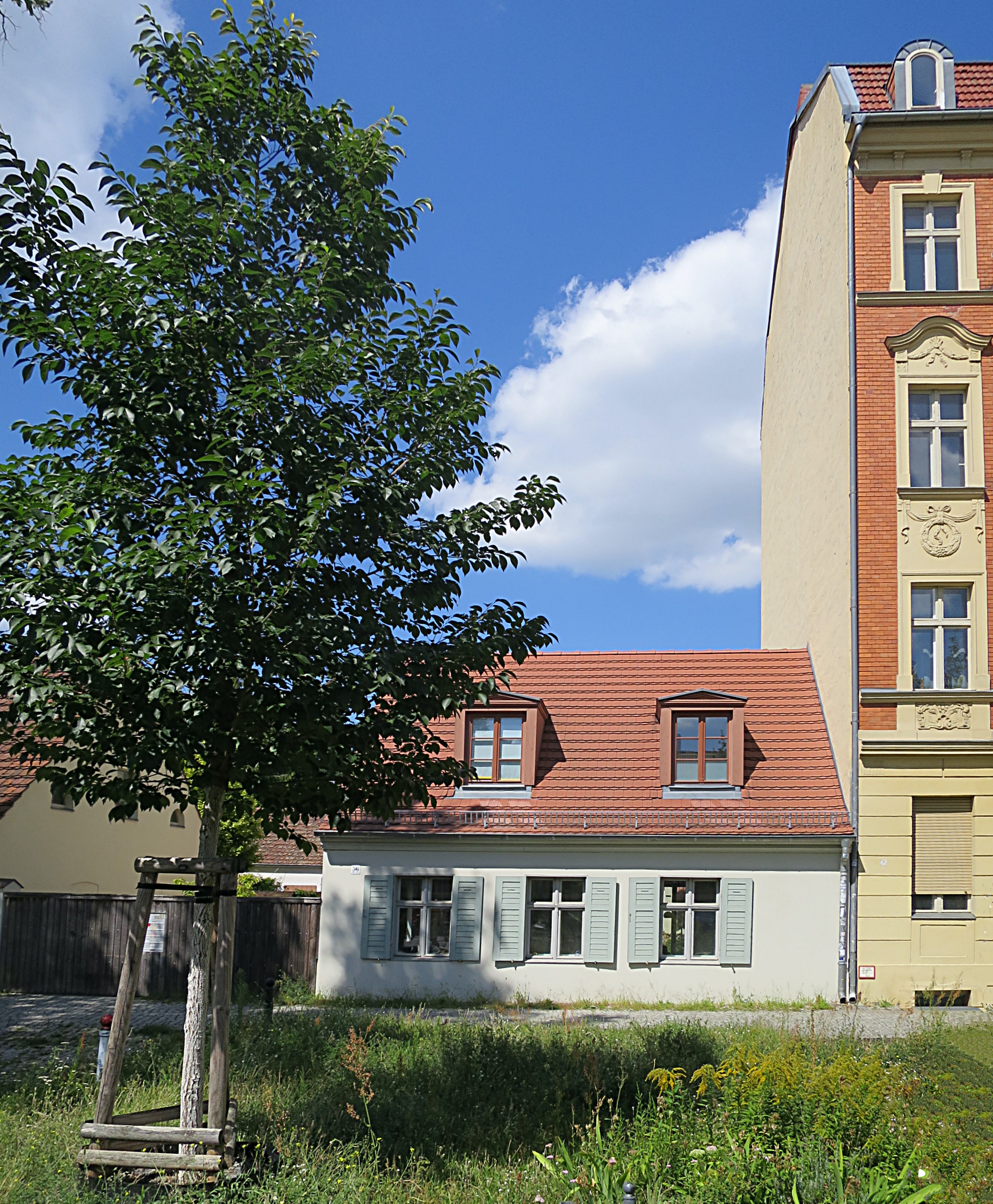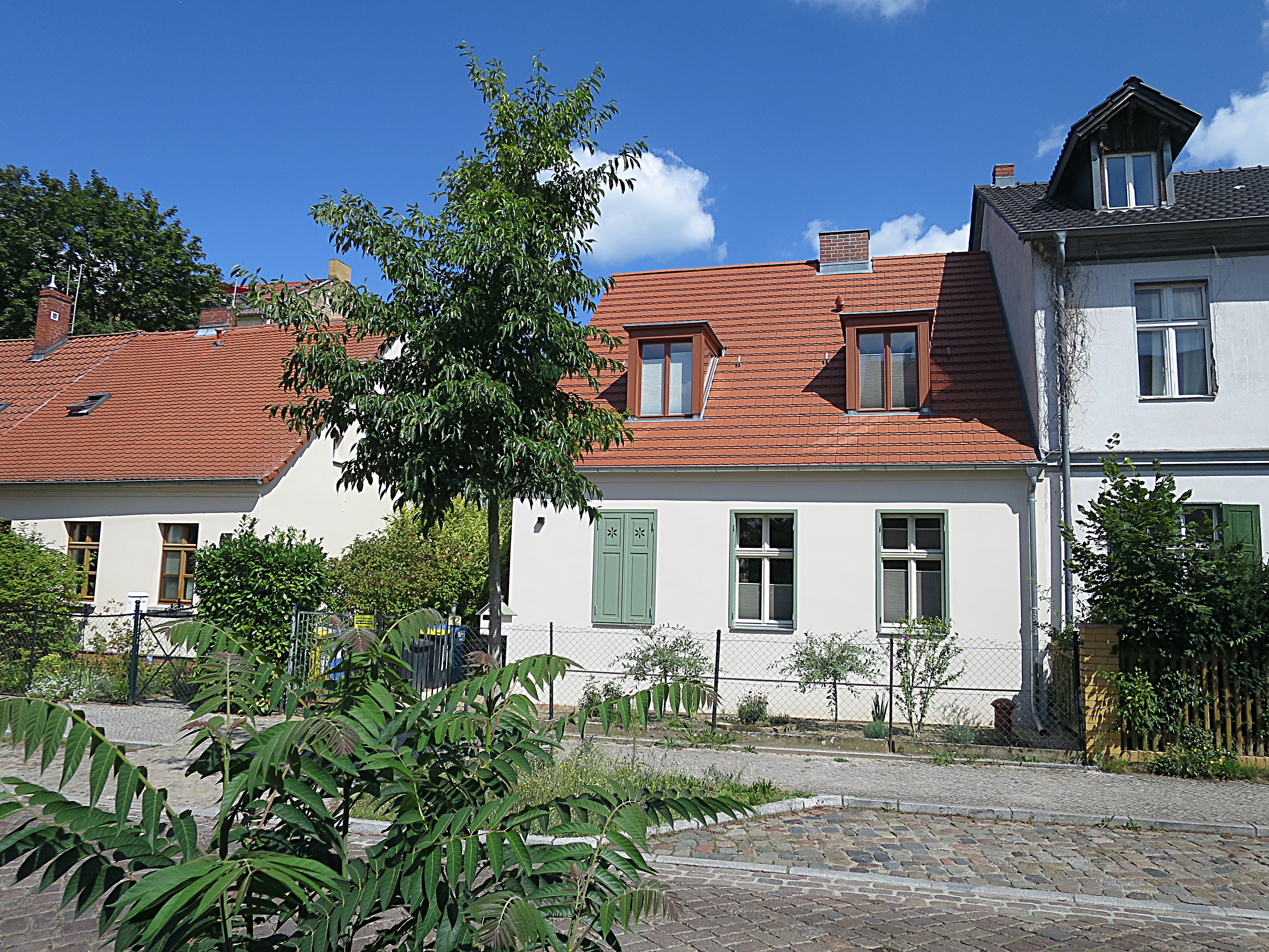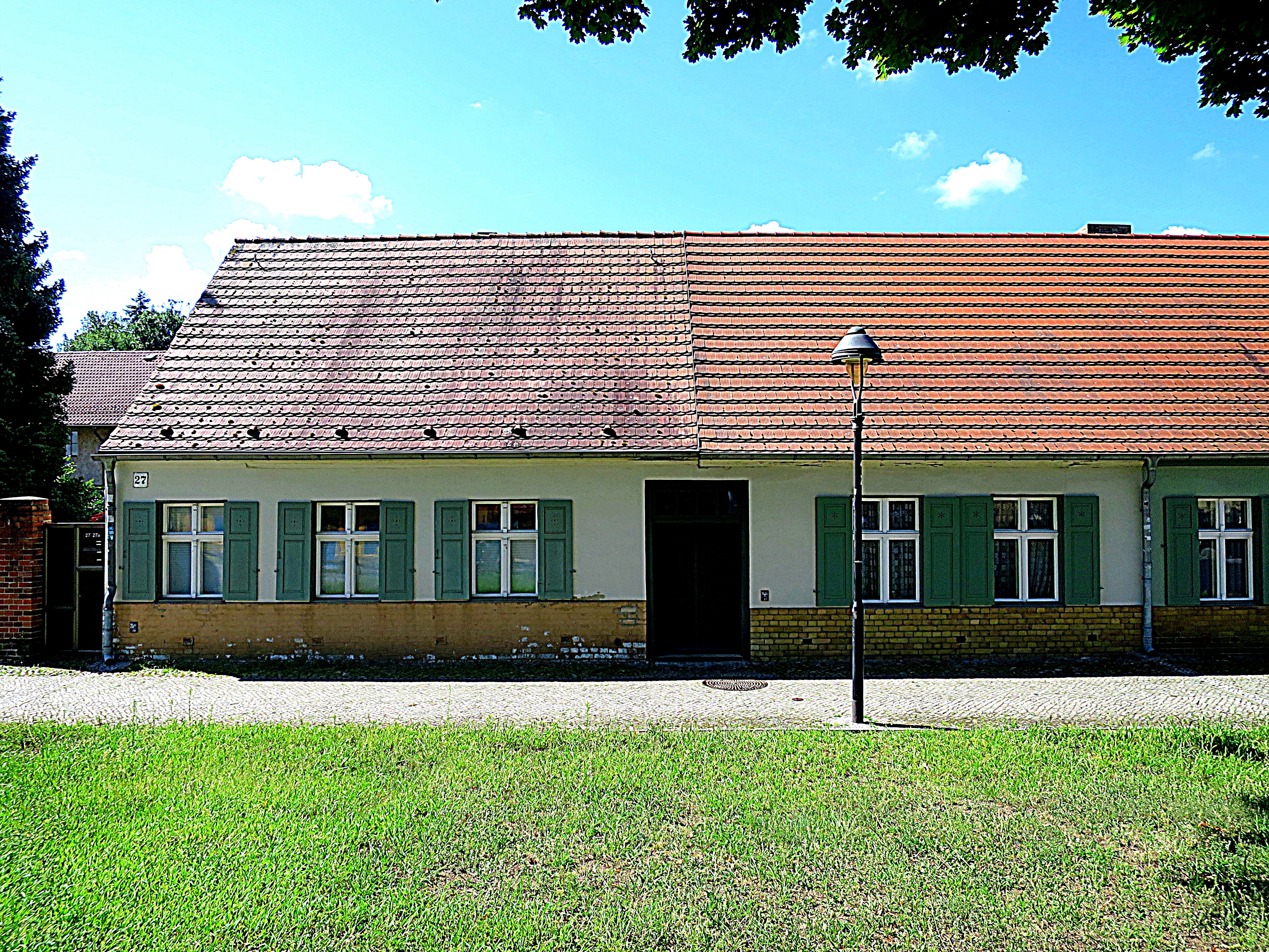 Um 1932 lebten hier in dem (heute) roten Gebäude: Erich Maxa oo Minna Weber.