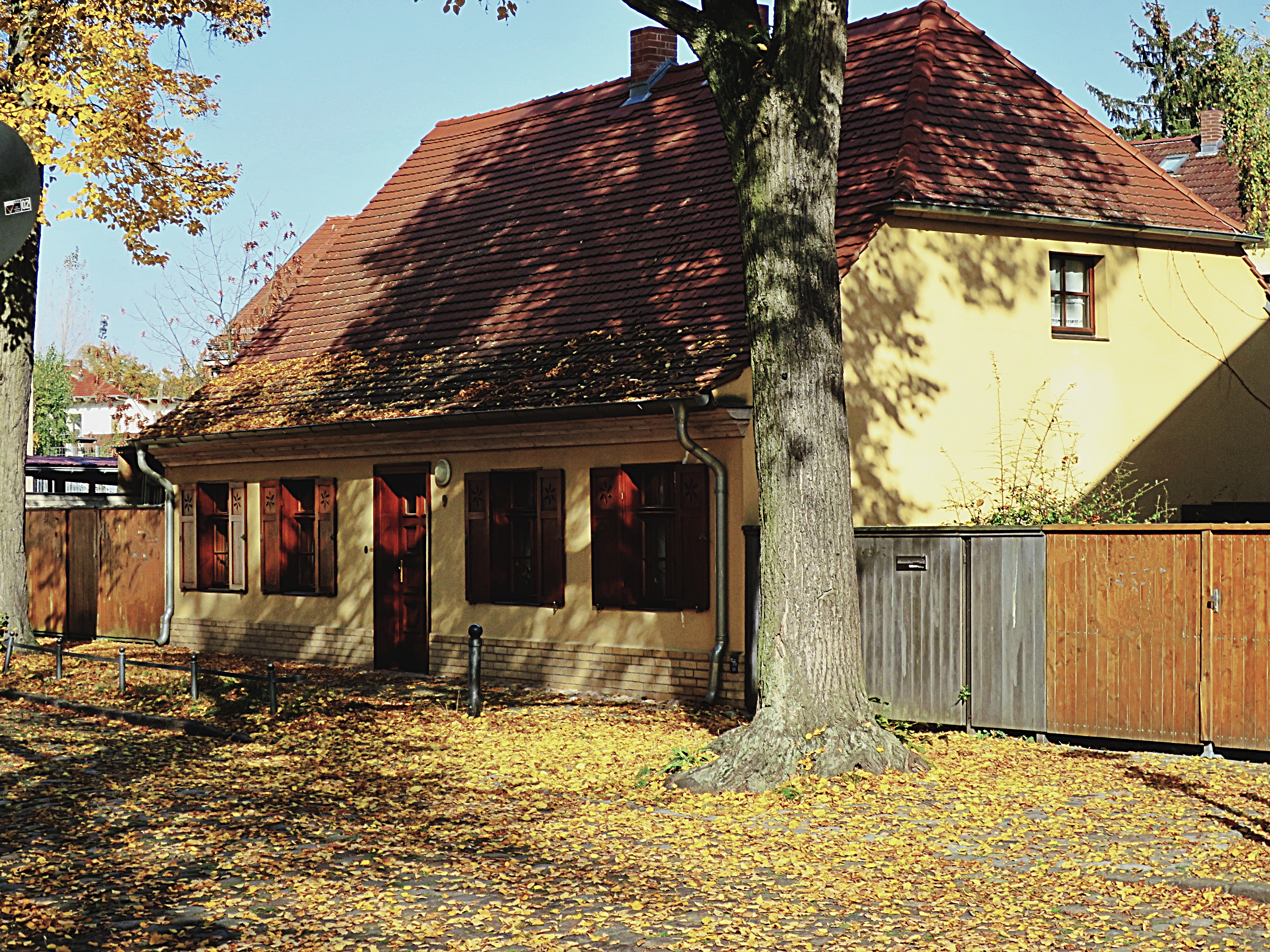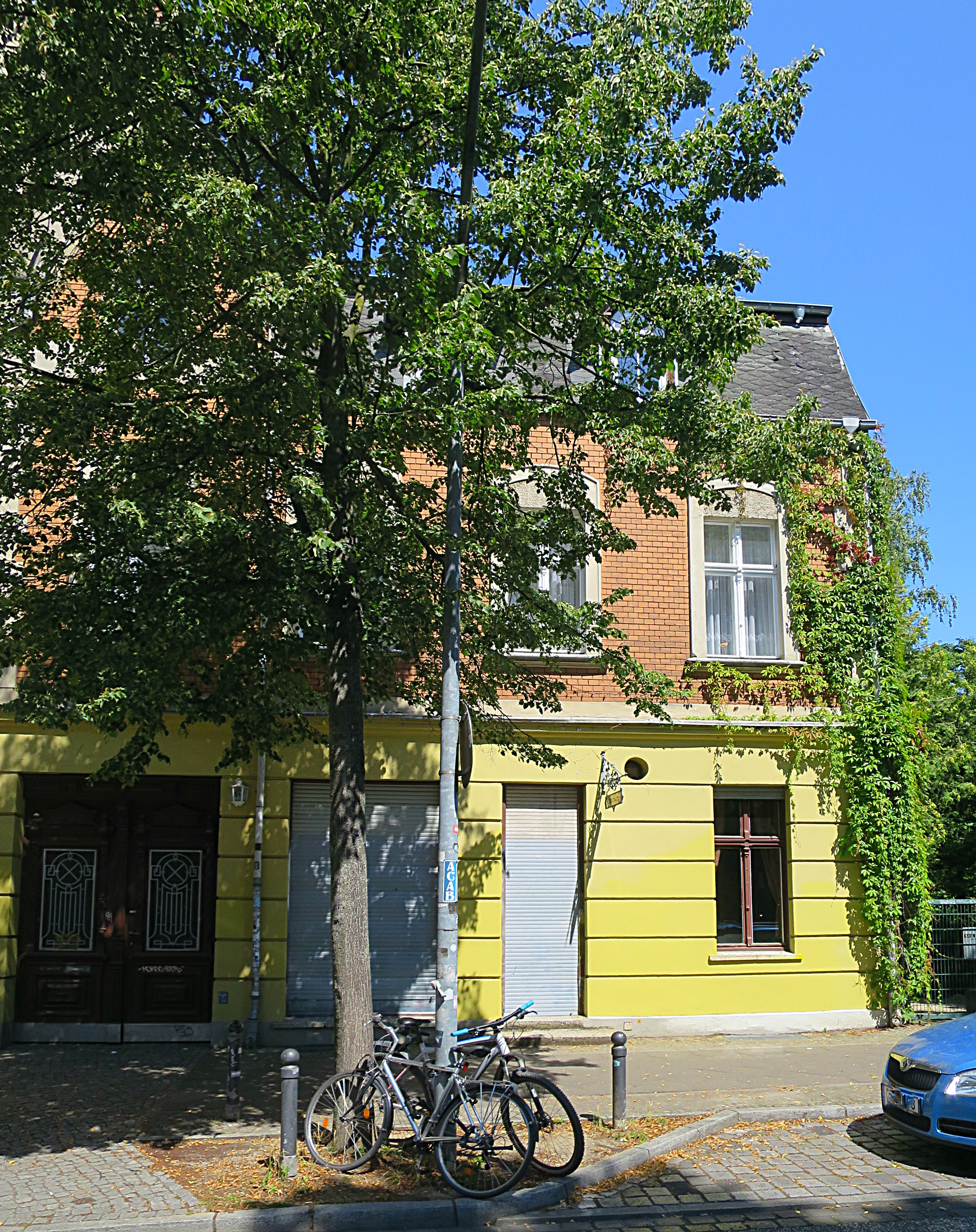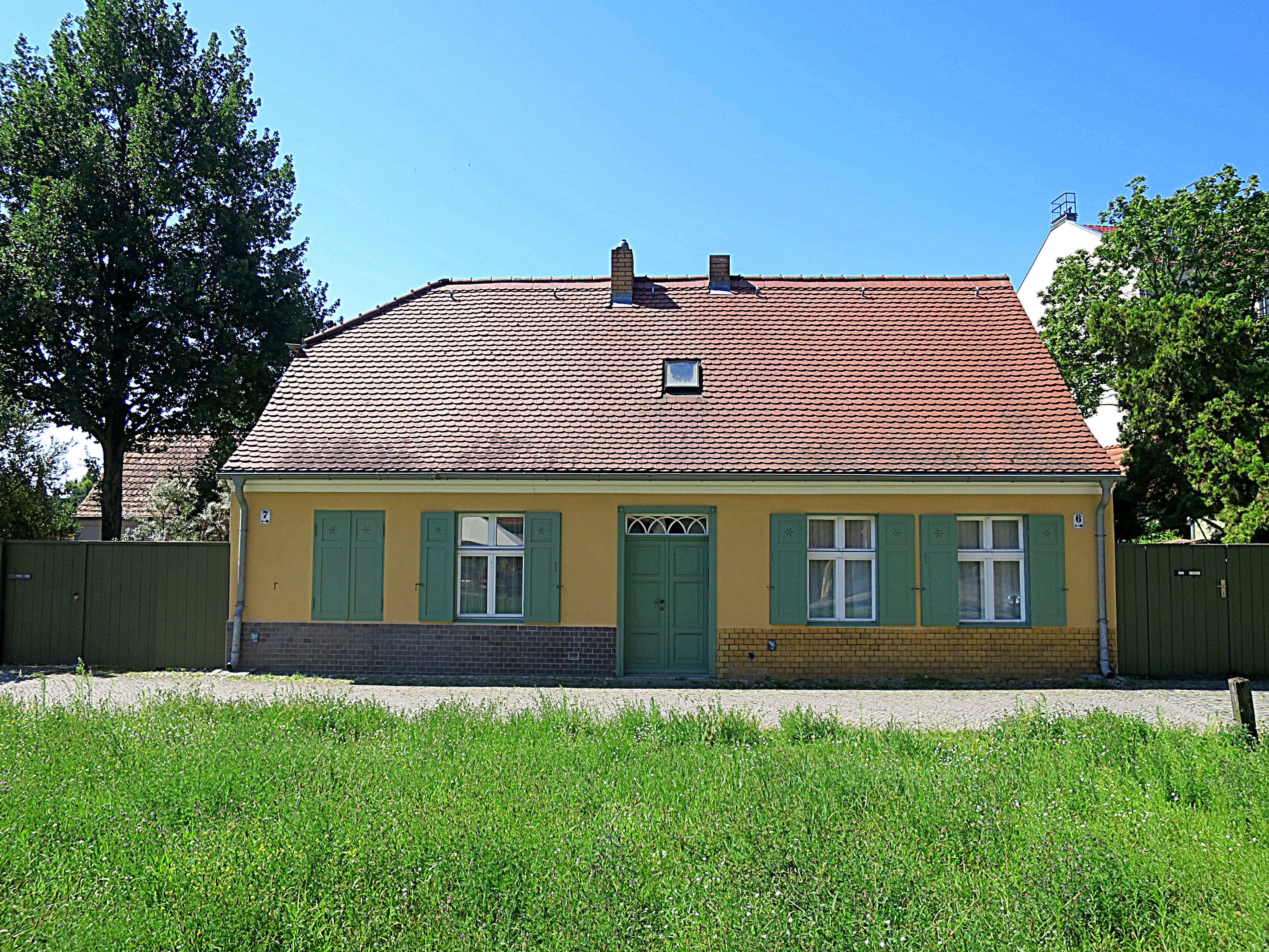 Um 1932 lebten hier in dem (heute) roten Gebäude: Erich Maxa oo Minna Weber.