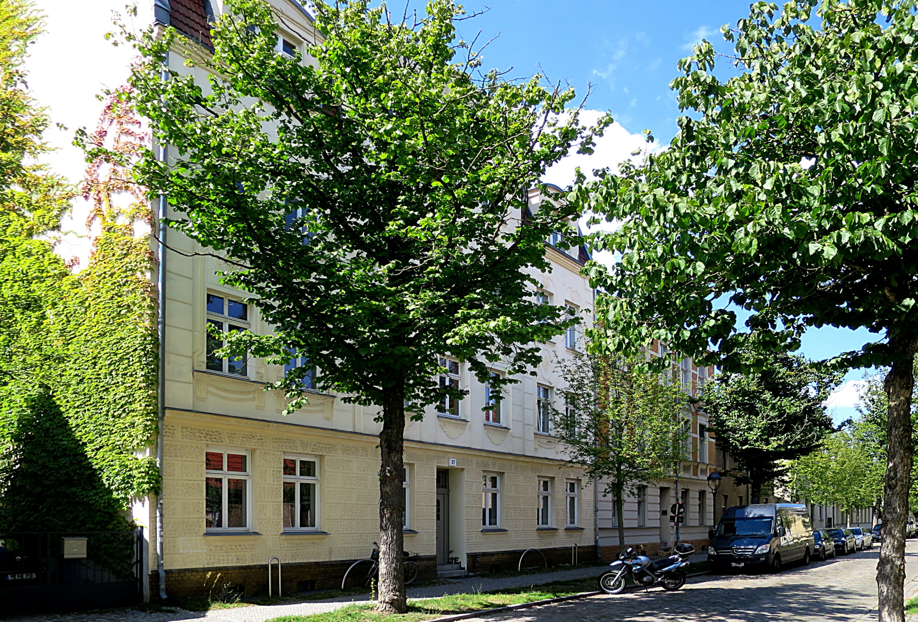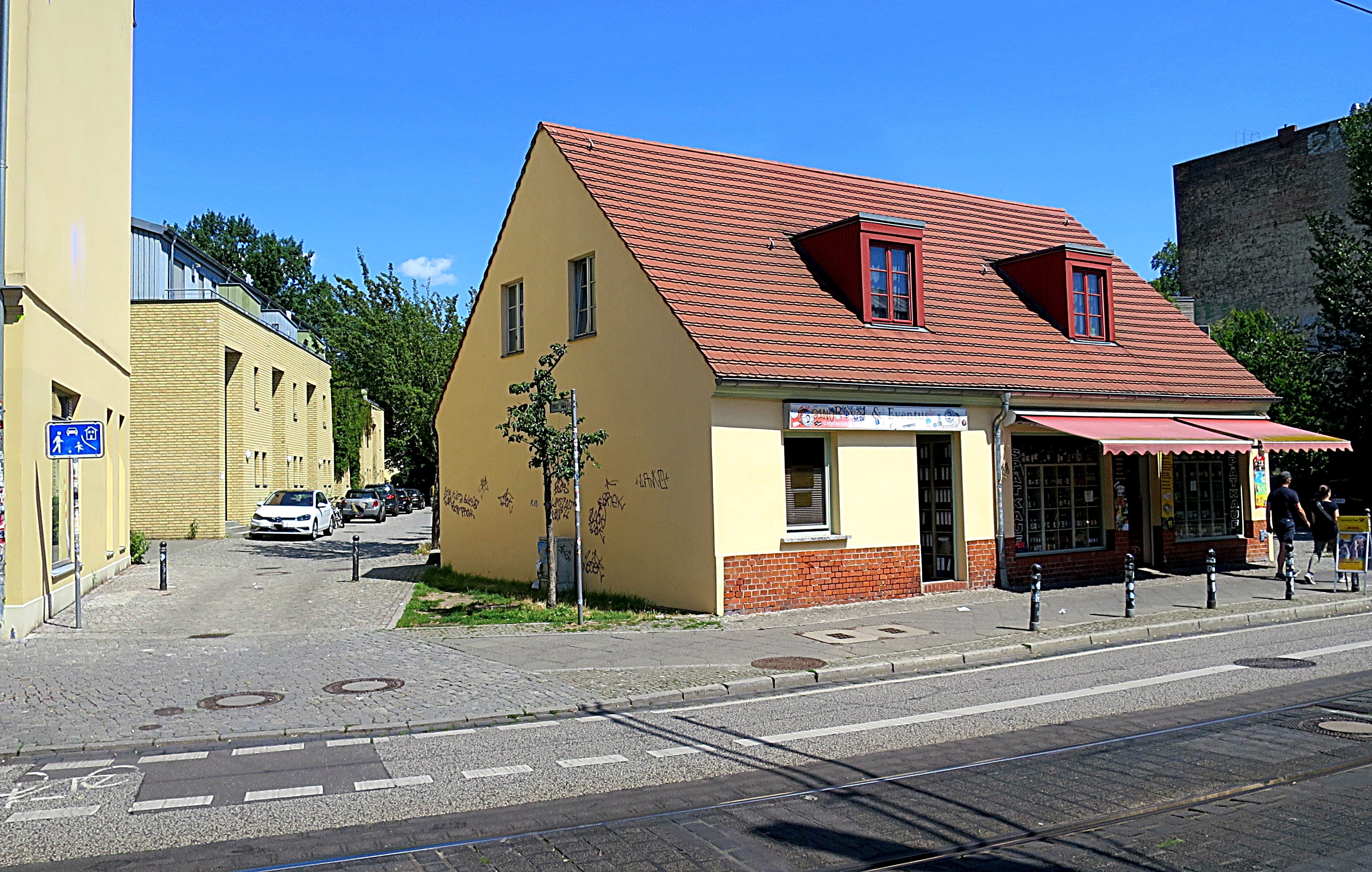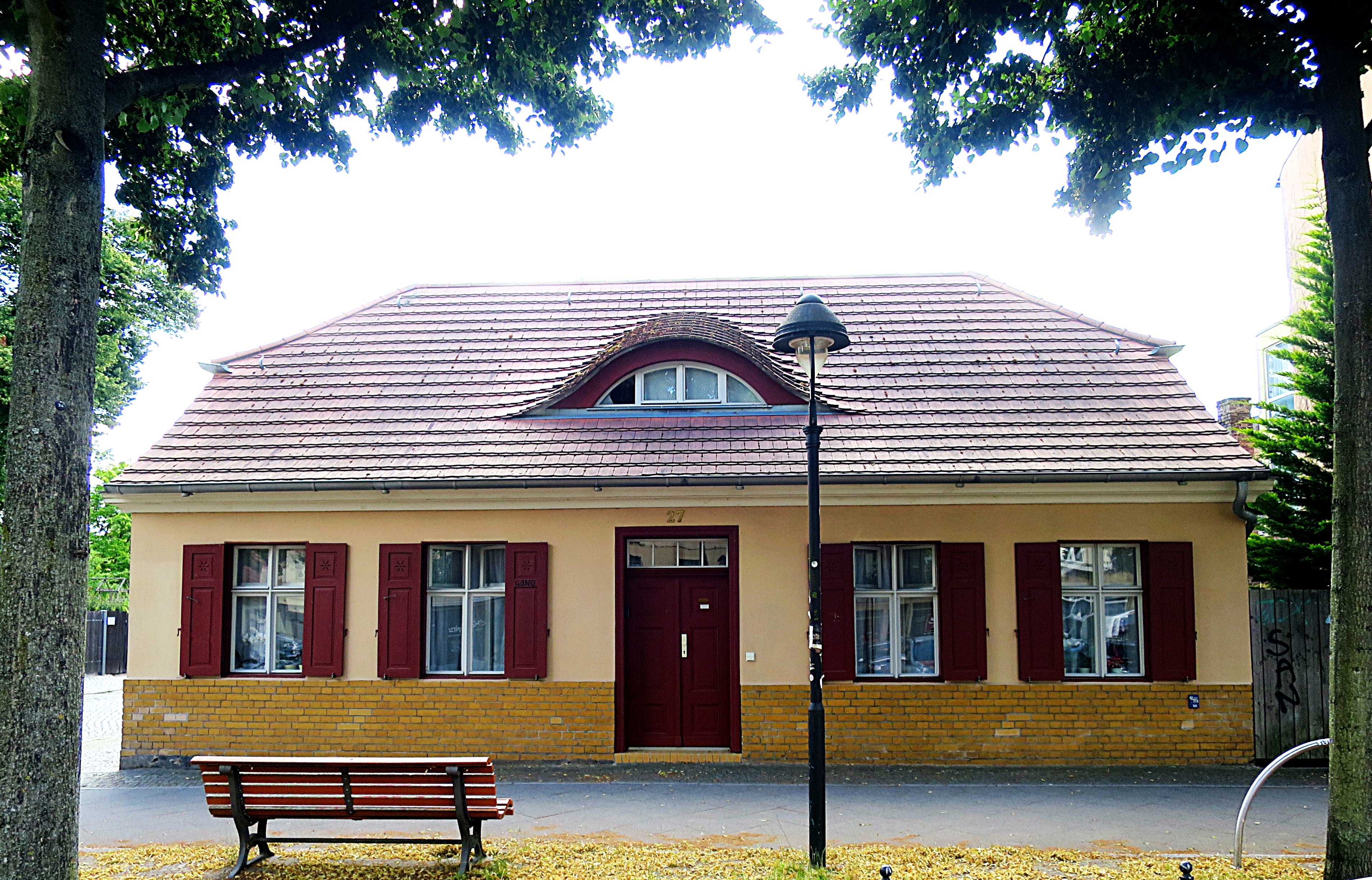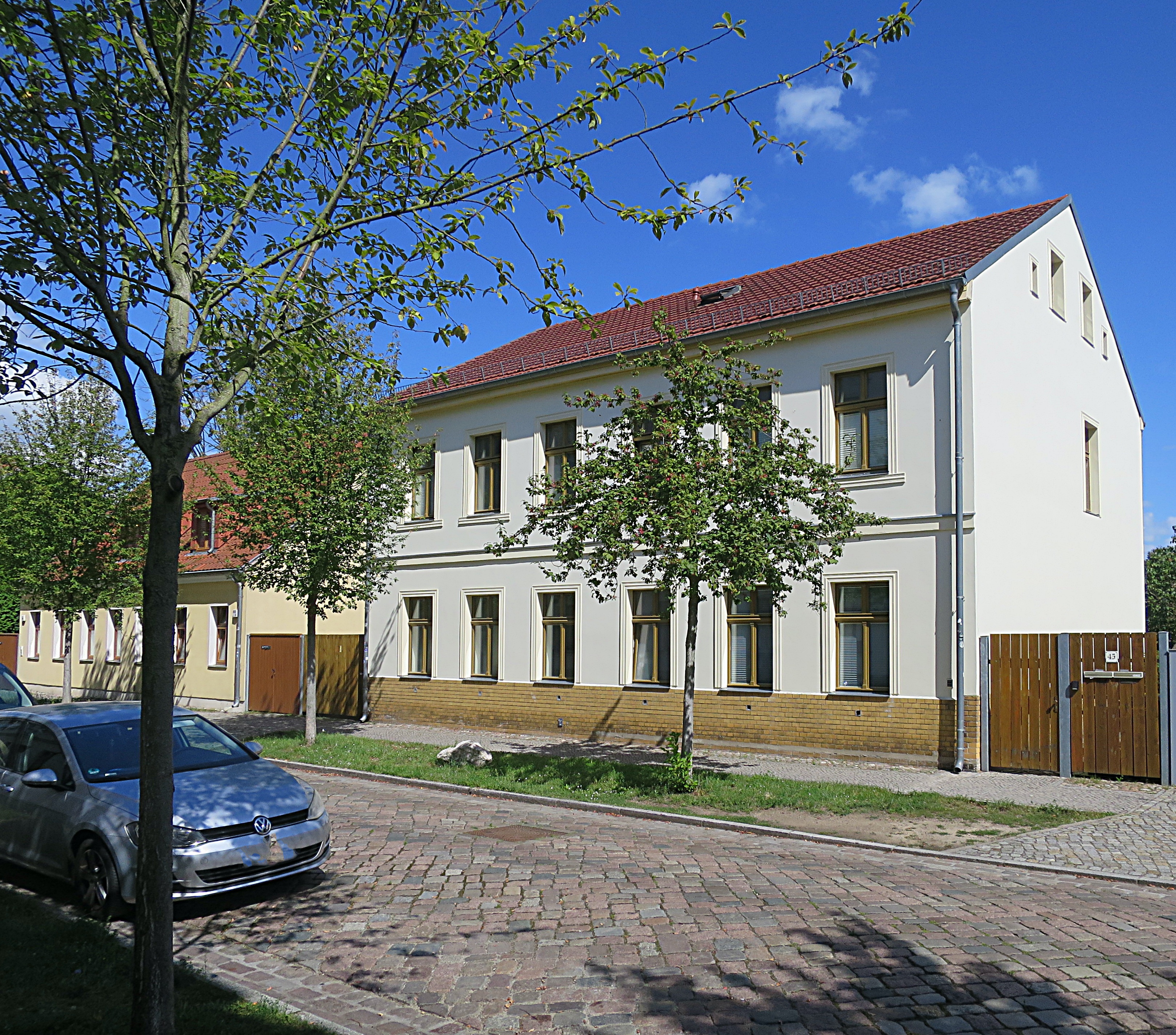 Um 1932 lebten hier in dem (heute) roten Gebäude: Erich Maxa oo Minna Weber.