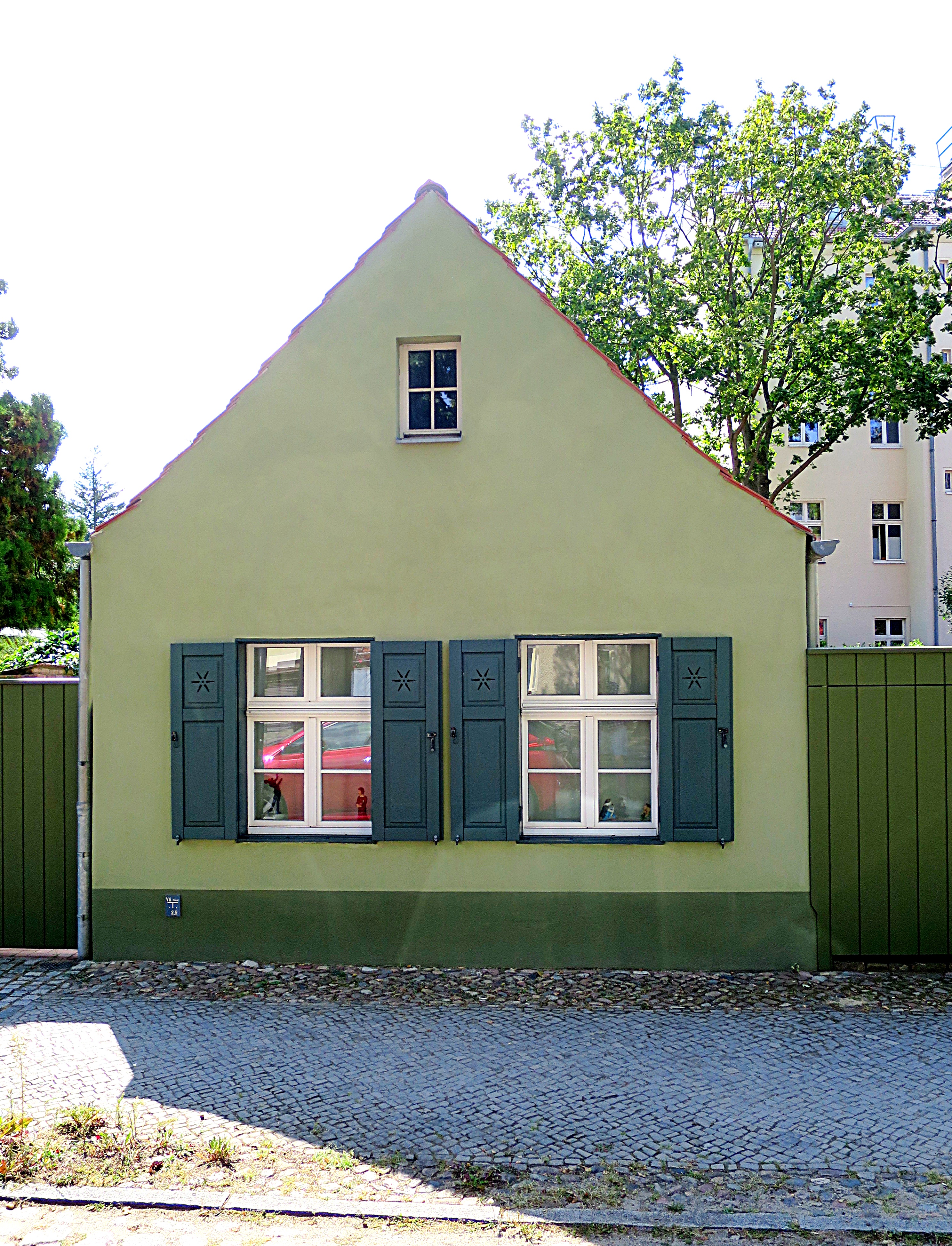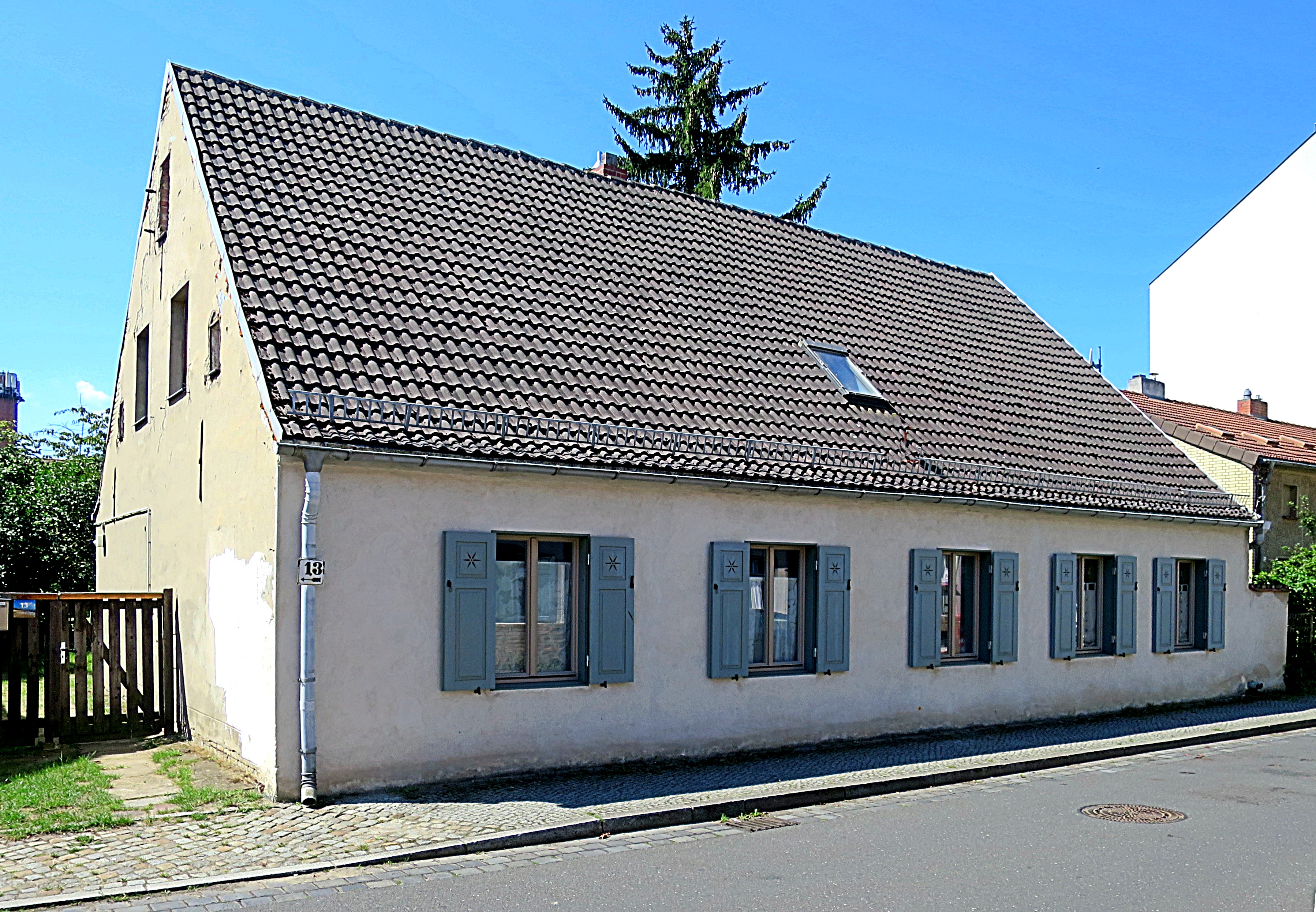 Die Anordnung des Gebäudes bildet eine Ausnahme, da es mit dem Giebel zur Straße steht aber ebenfalls 5 Achsen aufweist. Allerdings ist es schmaler, als die frühen Typenhäuser.