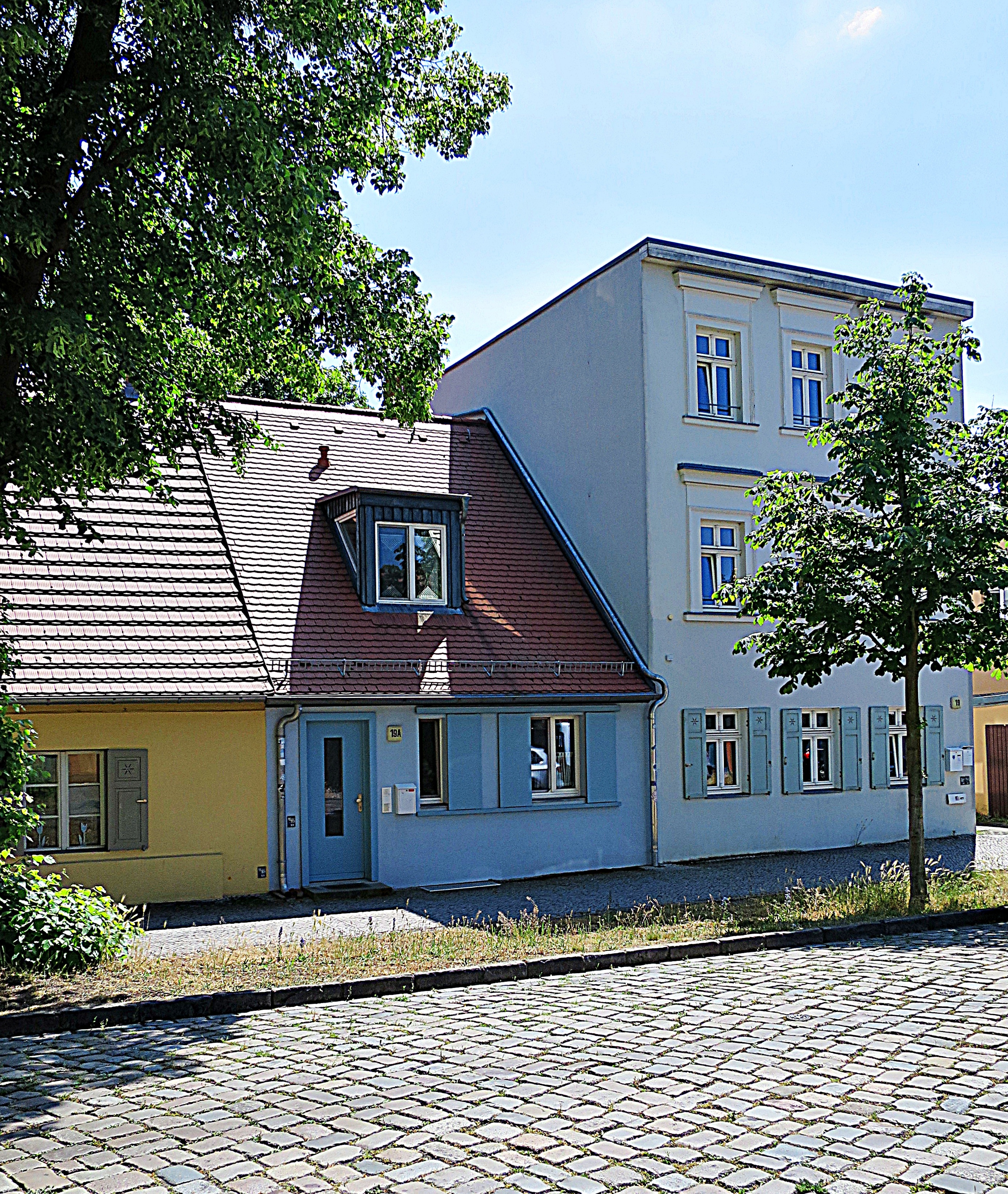 Zu späterer Zeit sah man links einen Anbau vor (heute Nr. 21) und rechts errichtete man ein großes, dreistöckiges Gebäude. Aus Platzgründen wurde dafür die rechte Haushälfte des bestehenden Kolonistenhauses wesentlich verkleinert (19a).