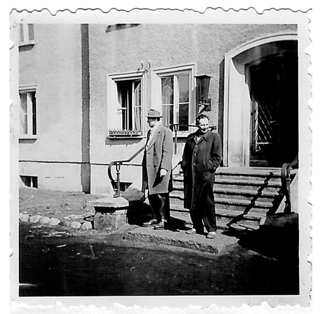 Zwei unserer Vorbilder verlassen das Lehrlingswohnheim im vertrauensvollen Gespräch – aber nur für einen Moment.