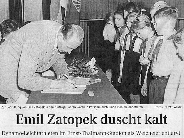 Emil Zatopek (1922–2000): Leichtathlet, Langstreckenläufer. Olympiade 1948 in London: 5-km-Lauf - Silbermedaille, 10-km-Lauf - Goldmedaille. Olympiade 1952 in Helsinki: 3 Goldmedaillen ... und weitere nationale sowie internationale Rekorde.