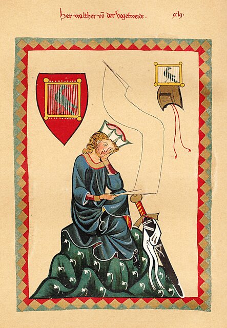 Der Minnesänger Walther von der Vogelweide. Seine Lebenszeit währte etwa von 1170 bis 1230.