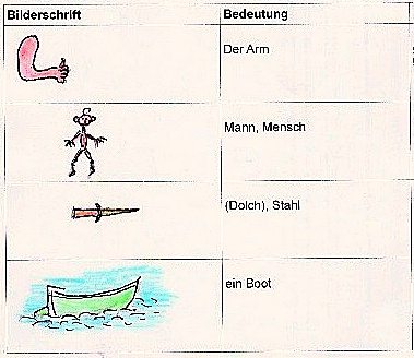 Zur germanischen Bilderschrift brachte Herr Brandt diesen Satz als Beispiel: „Der arme Mann stahl ein Boot“. Alles klar?