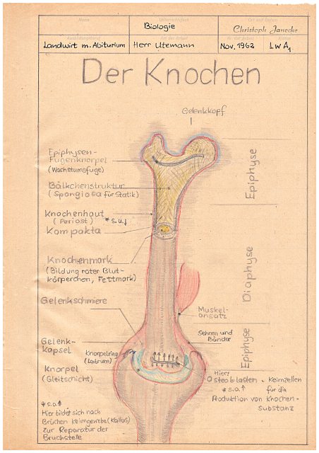 Deutschunterricht hingegen gab es bei Herrn Hugo Brandt – unter vielem anderen besprach er mit uns auch die Entwicklung der Sprachen und ihrer schriftlichen Ausdrucksformen. Wir sahen beispielhafte Proben der Keilschrift, der Bilderschrift, die Runen ... bis zu unserer heutigen lateinischen Schrift.