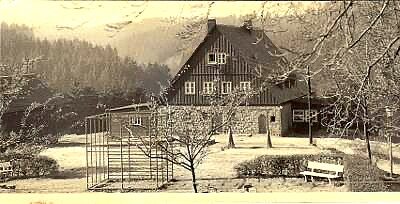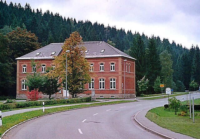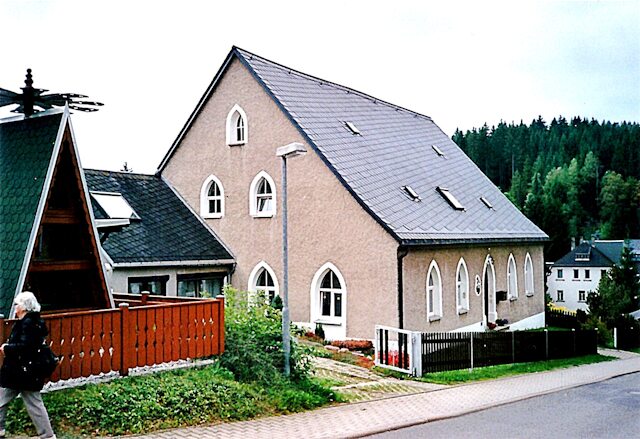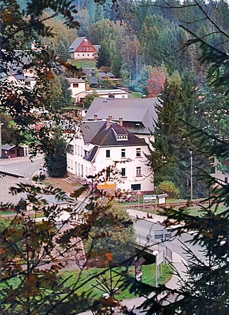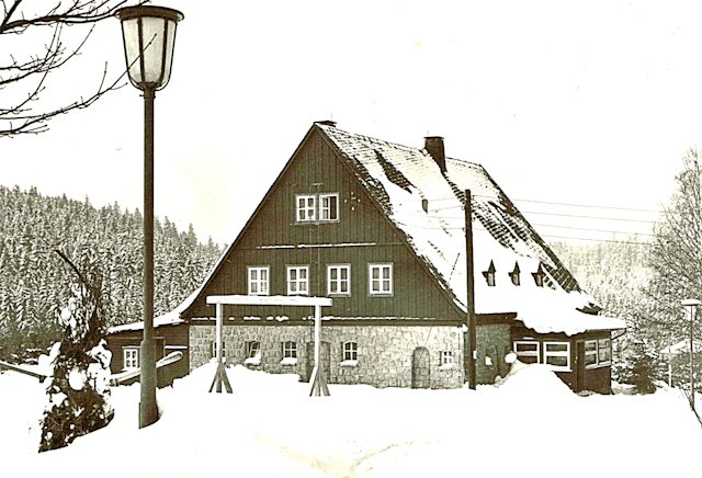 Das „Gotische Haus“ war früher das Armenhaus des Gemeinwesens, später die Schule, ist aber heute ein Wohnhaus für Leute wie du und ich. Und am Ende der Carlsfelder Straße (Nr. 17) finden wir uns beim Kurheim wieder ein.