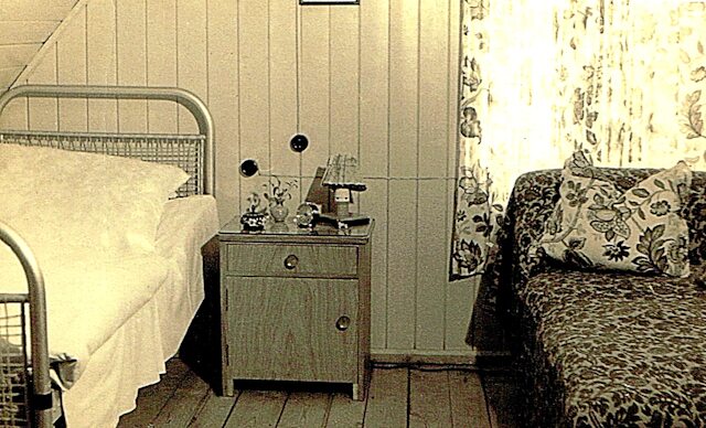 Wurde mal eine Erzieherin eingestellt, die noch „alleinstehend“ war und hier im Ort keinen Wohnraum hat – so kann ihr im Dachgeschoss des Heimes ein ganz persönliches Zimmerchen angeboten werden. In der Nähe der am Giebel angebrachten Friedenstaube findet man gute Ruhe und schläft selbstverständlich ebenfalls in Damast.