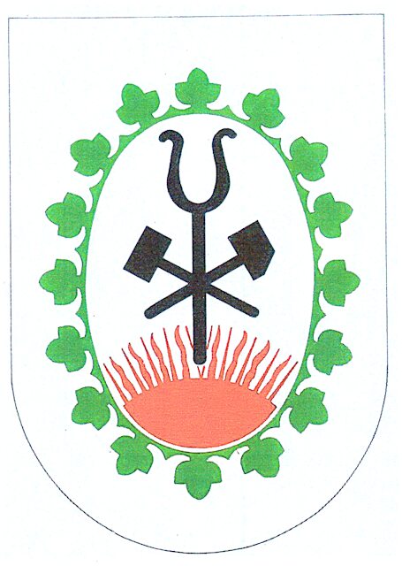 Die Darstellung zeigt uns den grünen Rautenkranz, die Morgenröte der aufgehenden Sonne und im Zentrum „das Gezähe“. Es ist des Bergmanns historisches Handwerkzeug, bestehend aus dem Schlägel und dem Keilhammer. Gezeigt wird auch die Schlackegabel, die allerdings erst beim Verhüttungsprozess des Erzes zum Einsatz kommt.