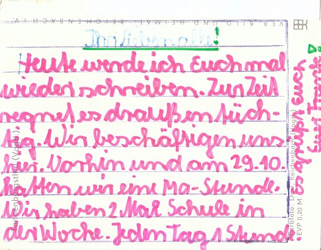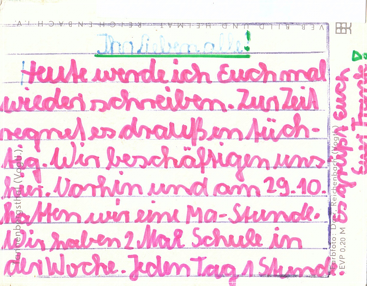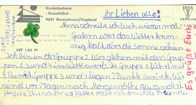 Nun die Grüße auf der Rückseite der Ansichtskarte: