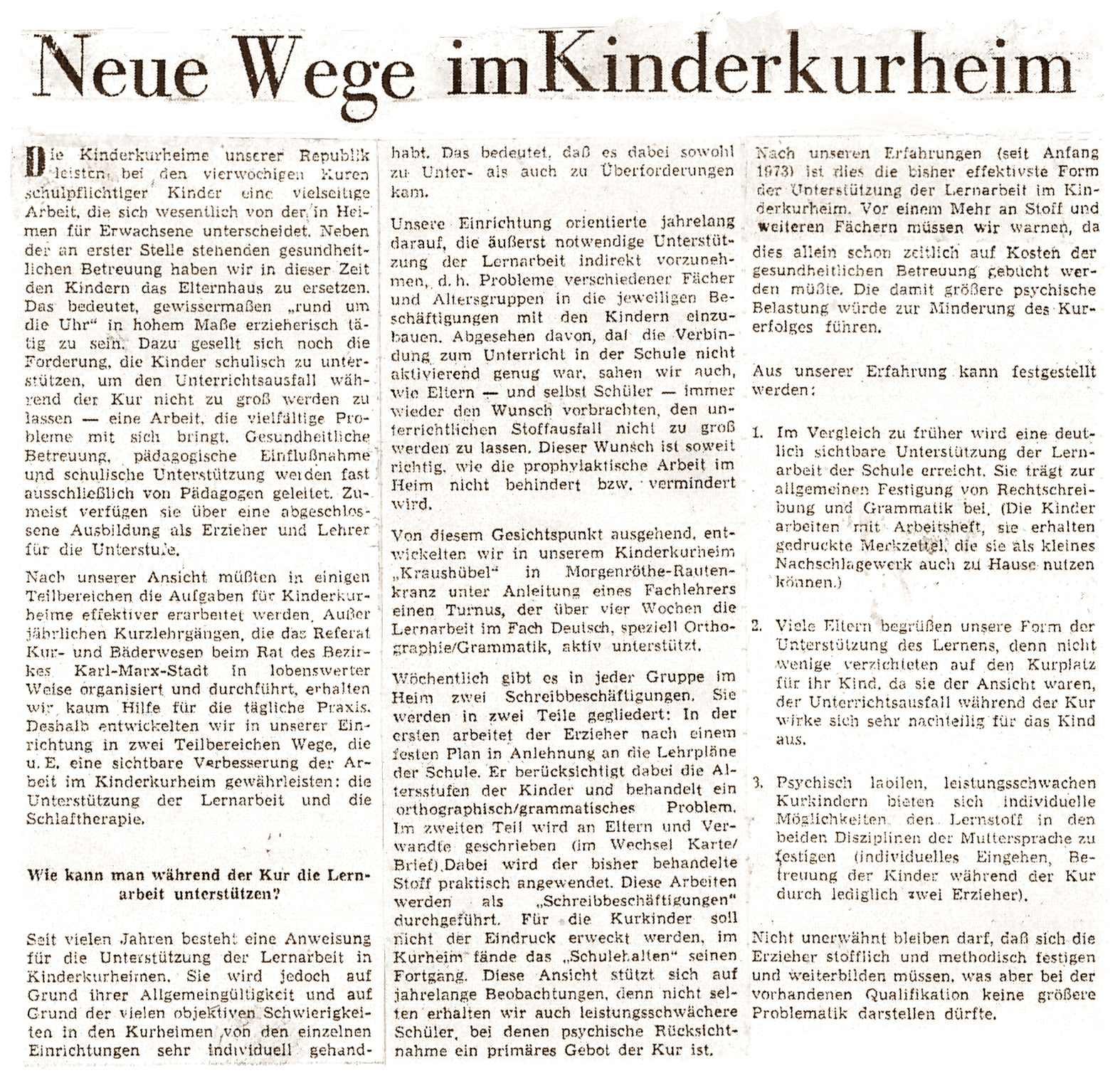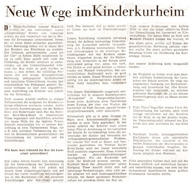 Quelle: Zu lesen in der Zeitung >Humanitas< für das Gesundheits- und Sozialwesen und alle anderen Interessenten, erschienen etwa im Februar 1976. (Die Textanordnung, also der Spaltenumbruch, musste gegenüber dem Zeitungs-Original verändert werden.)