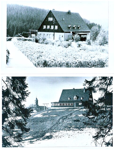 Zu jeder Jahreszeit ist es hier schön. Unteres Bild: Das Kindererholungsheim auf dem Rautenkranzer Kraushübel nach dem letzten Schneefall, den gerade die Sonne aufleckt.